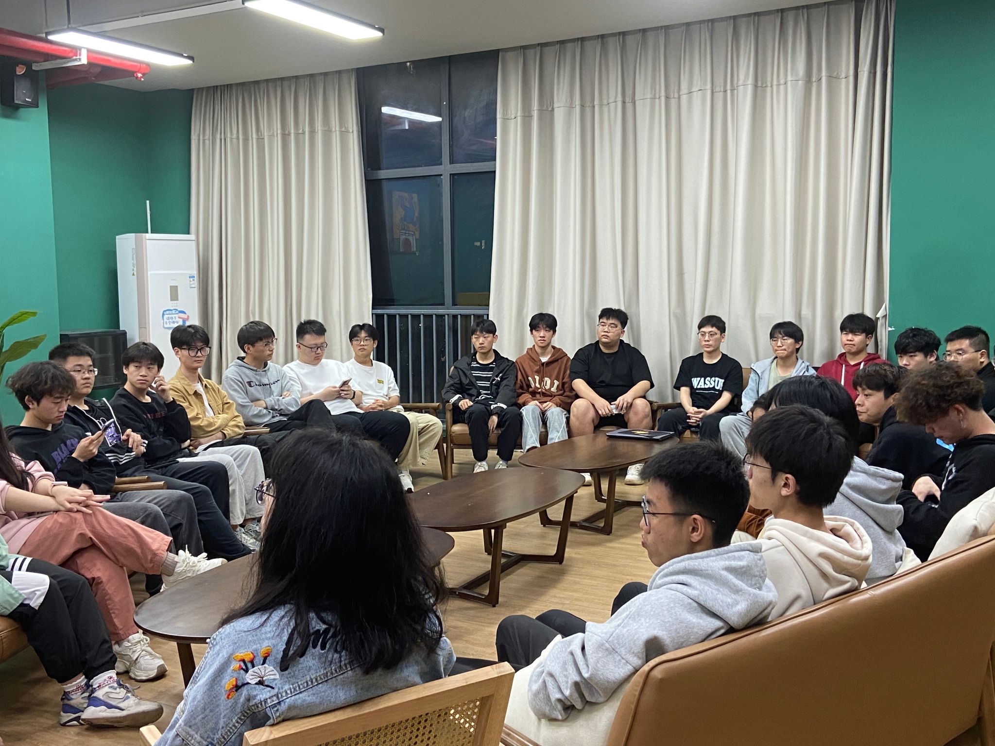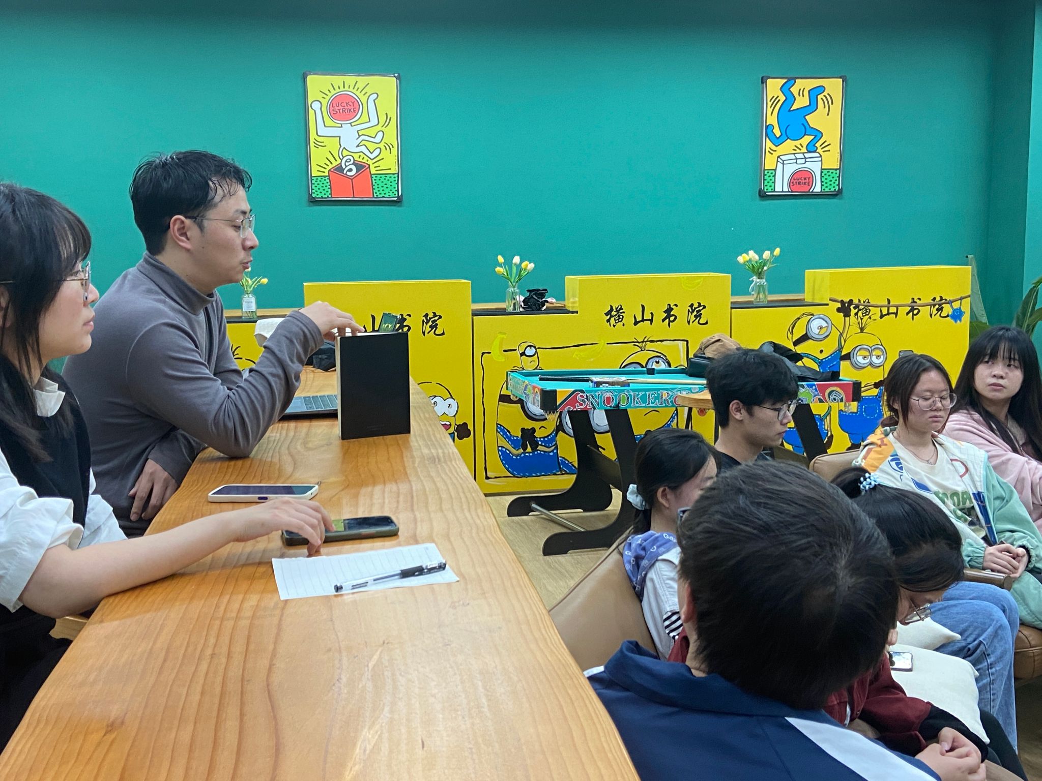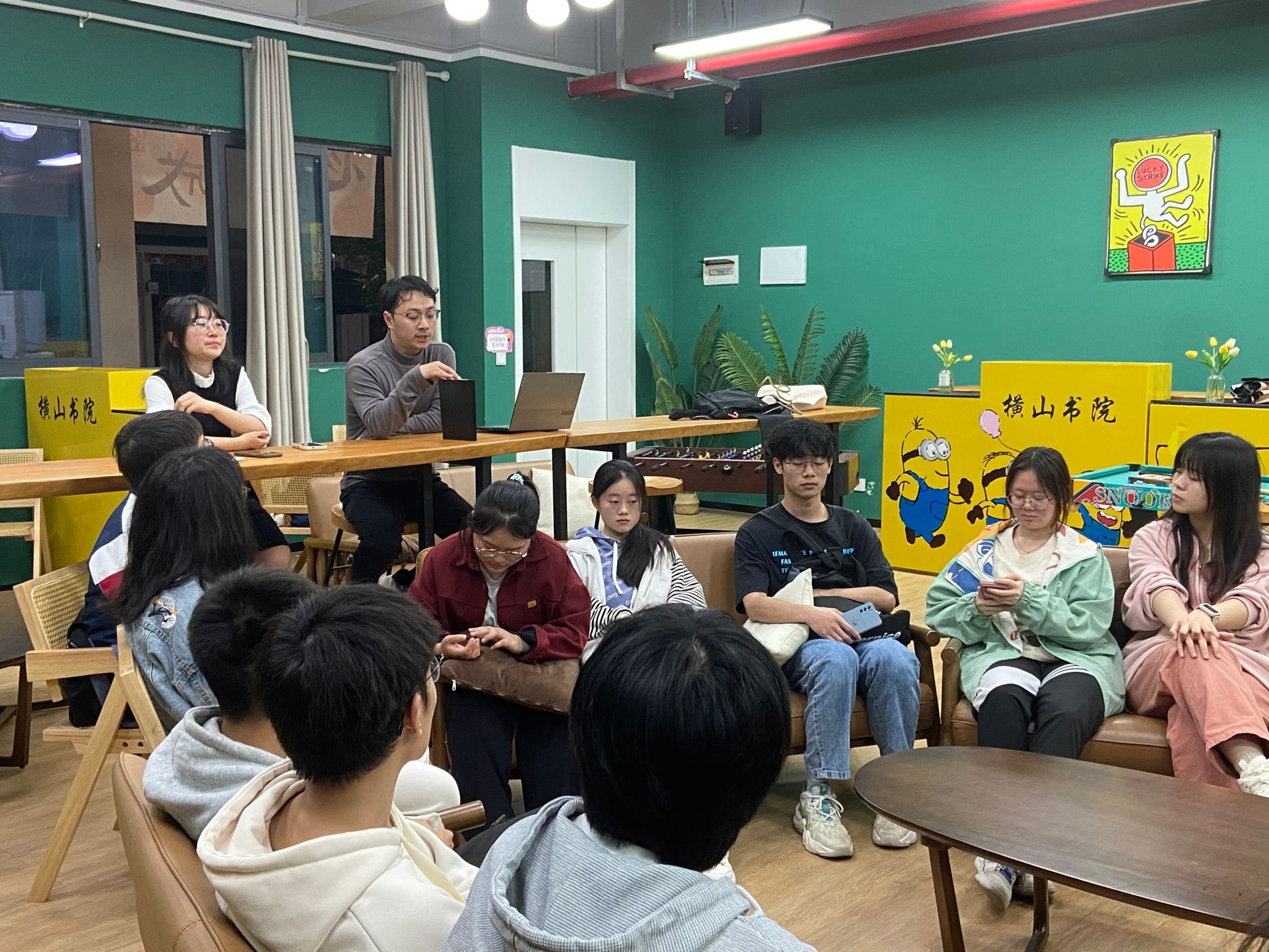 2024年4月10日,星期三晚上8点半,《计算机技术与应用创新中心》的交流会在横山书院小榭Ÿ咖啡厅隆重举行。这标志着计算机学院为贯彻学校“四位一体双院制+特色课程”人才培养目标,联合横山书院,共同打造的新型实训指导工作室正式启动。活动由计算机学院乔蒙蒙老师主持,共有乔蒙蒙、王晓浪、蒋云凤三位创新中心老师以及来自创新中心的29名新进学生参加。