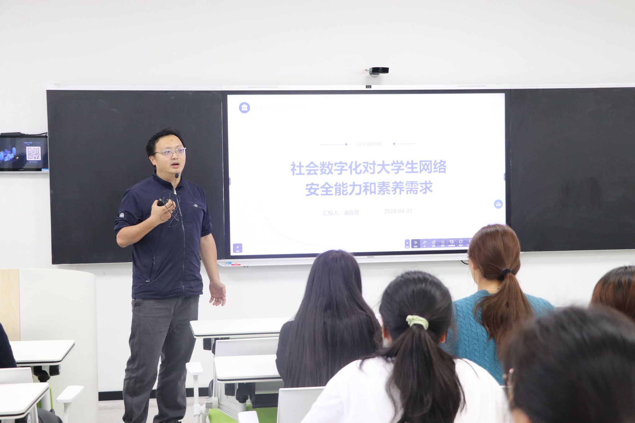 迎合当下网络安全重要性日益提高的状况,潘良晋老师则从网络安全与人们日常生活的紧密关系入手,深入浅出地阐述了网络安全的概念和重要性。他通过一系列真实案例,揭示了网络信息泄露的严重性和潜在风险,为学生们敲响了警钟。潘老师还进一步分析了网络安全领域的发展趋势和挑战,并指出随着技术的不断发展,新的攻击手法和防御技术层出不穷,网络安全形势日益严峻。他呼吁学生们要不断提升自己的网络安全意识和技能,积极参与网络攻防比赛等实践活动,以更好地应对网络安全挑战,共同守护国家网络安全。