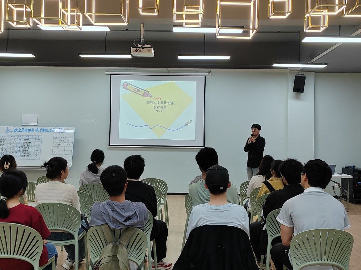 为配合教育部高等教育教学评估工作,落实教育部关于高等院校英语教学改革和考试与评价改革精神,促进大学各类英语教学改革的实施,第二十六届全国大学生英语竞赛举行在即。为了帮助移通学子更好熟悉竞赛流程,了解比赛试题形式,提升应试技巧。“精英之声”语言社于4月10日在横山书院知物·多功能活动室开展了一场英语竞赛指导活动。特此邀请了远景学院英语专业的指导老师孟凡升老师莅临现场为同学们讲解竞赛技巧。
