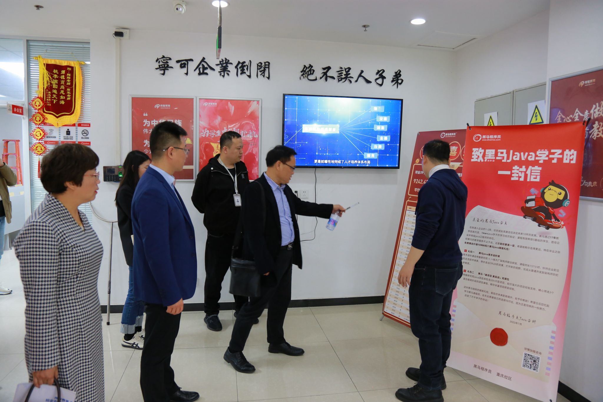 座谈会结束,公司负责人带领大家到公司进行实地参观考察。黑马程序员培训课程上,老师授课很仔细,学生听课也很认真;走廊墙上张贴的“红榜”也很引人注目,这些都是公司培训的学员在求职过程中所取得的成就,值得被展示出来激励大家。