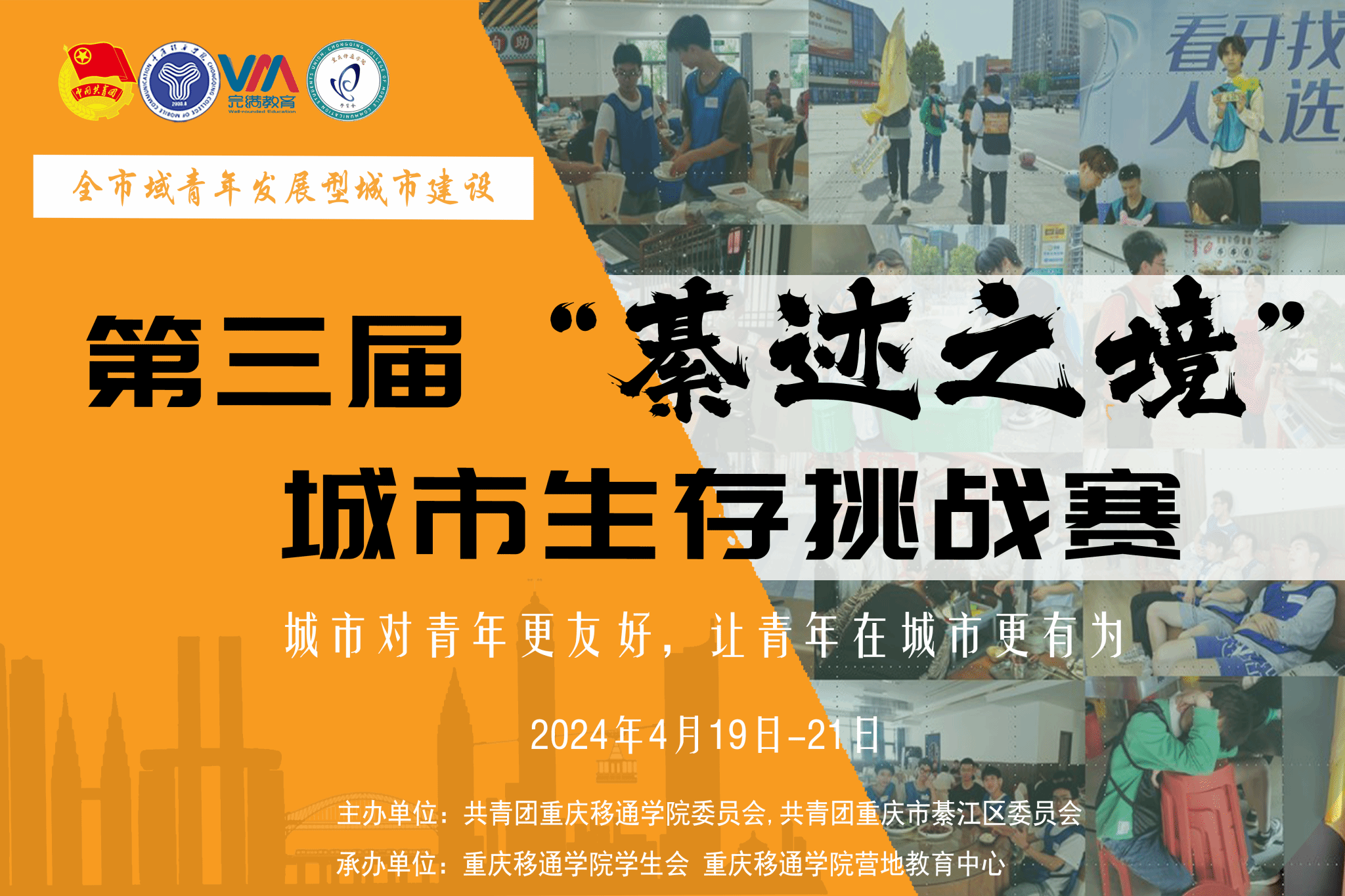 0元开启城市生存挑战,打造城市青年聚集地,开启一场属于移通青年的极限素质挑战……重庆移通学院双校区隔空联动,綦江校区联合团綦江区委、营地教育中心,结合青年发展型城市理念,在綦江城区及东溪古镇共同合作开展,以“青年与城市协同发展”为核心主旨,举办了一场属于移通青年的72小时城市生存挑战赛,发起了一次属于青年与城市的深度探索。本次活动结合綦江本土的地理特色、风土人情、文化底蕴,以“追寻城市印记”“探索非遗文化”“野外生存挑战”为关键词开展。重点锻炼青年核心能力,促进青年与城市的双向奔赴,引导青年学生认识自我,加入到创造青年发展型城市的发展步伐中来。