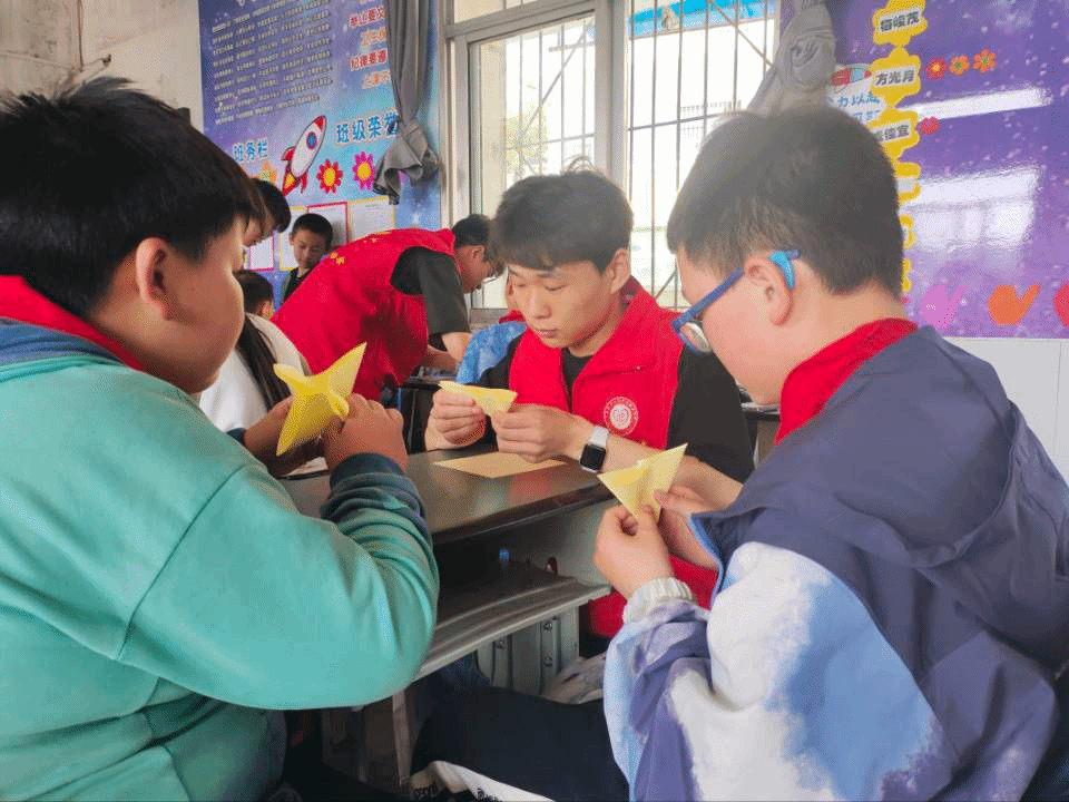 随着上课铃声的响起,活动首个项目——手工折纸DIY正式拉开帷幕。在志愿者们的悉心指导下,孩子们将他们对美好事物的憧憬融入指尖,用五颜六色的卡纸折叠出蝴蝶、香蕉,瓢虫等形状。细心地拼折,兴奋地展示,脸上洋溢着纯真无邪的笑容,整个教室充满了温馨和欢乐的气息。