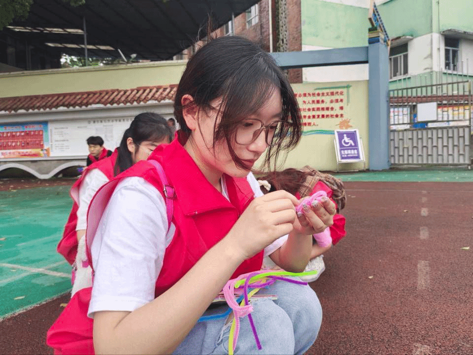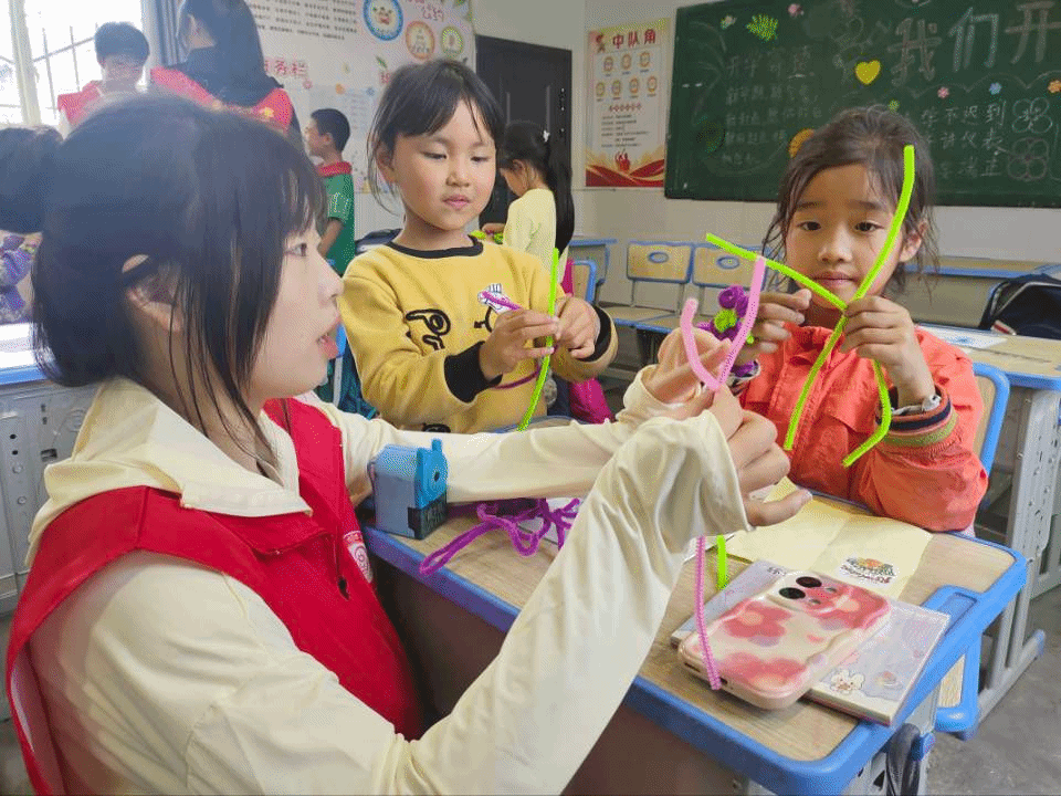4月19日下午14:00,“綦”欢团 艺疗“育”关爱儿童志愿服务活动在万兴小学正式开展。为了更好地与孩子们建立深厚的情感联系,移通学院的志愿者们提前学习了编扭扭绳、折卡纸等富有趣味性的互动小游戏,在有限的活动时间,为校园营造出一种欢乐、和谐的氛围。