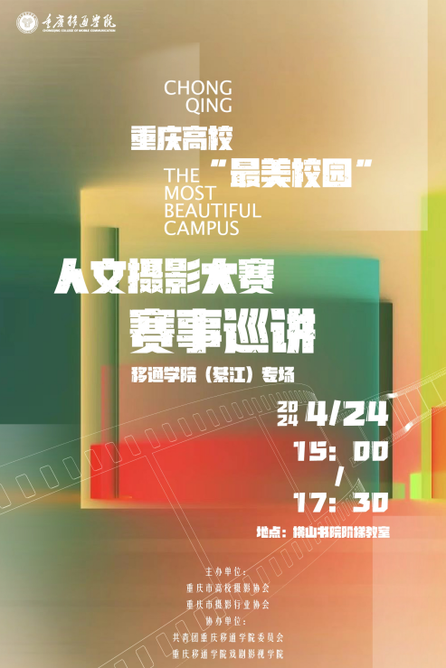四月的横山书院伴着蒙蒙细雨,拾级而上,春雨中的移通美景便如画卷一般徐徐展开。4月24日下午,第三届“金夫人儿童天堂”杯重庆高校“最美校园”人文摄影大赛赛事巡讲团的嘉宾们来到了本次巡讲的第四站——重庆移通学院。本次比赛由重庆市高校摄影协会、重庆市摄影行业协会主办,由重庆移通学院团委、戏剧影视学院协办,为学校内涵建设与质量提升工作提供了行业与竞赛的支持。在这场春日之邀中,来自行业、协会的嘉宾们与我校师生共赴了一场技术与艺术、实践与创意、科技与人文的光影盛宴。