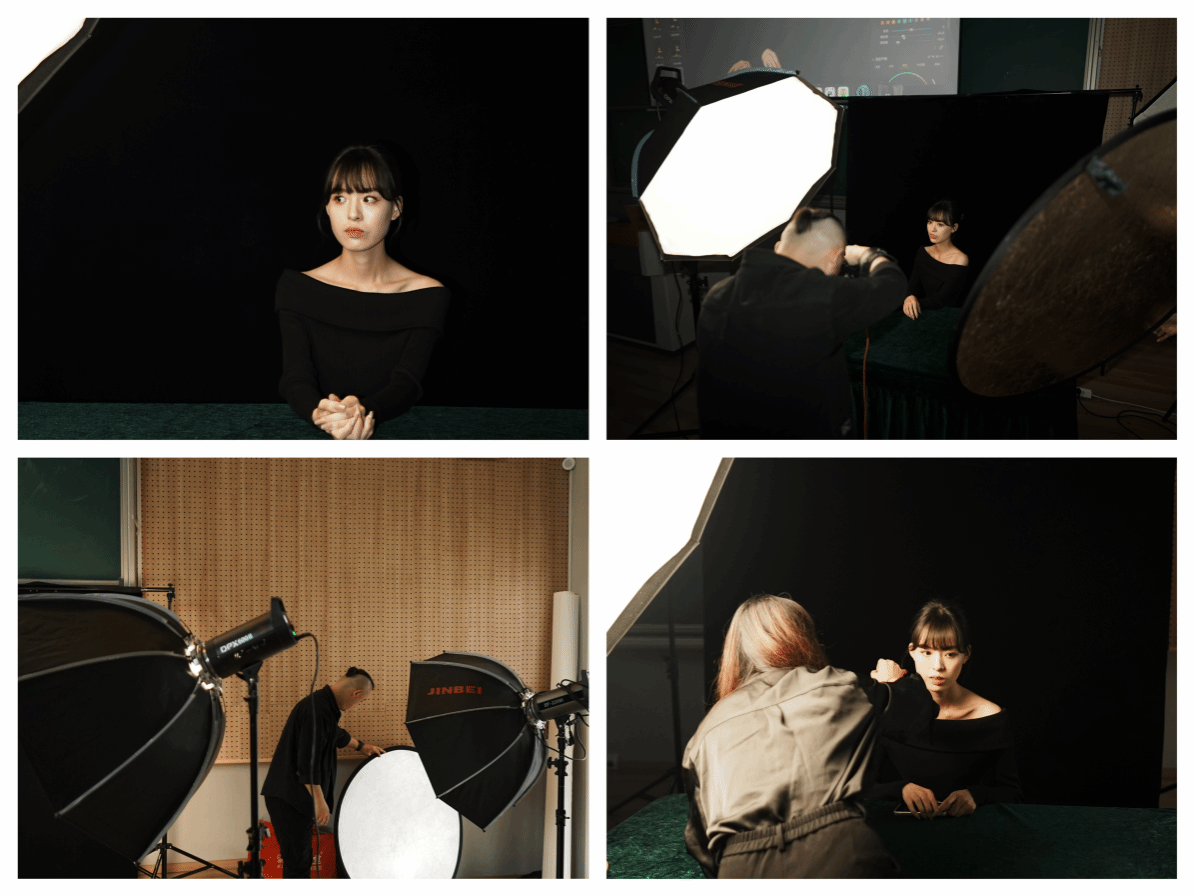随着快门的一次次按下,他一边拍摄,一边细致地讲解着灯光造型和人像摆姿技巧。他引导着同学们注意光线的方向和强度,讲解如何恰当选用光线来准确地传达出不同的情绪。他还特别强调在拍摄不同性格的人物时,要学会与模特沟通,注意语气的转换和自身的代入感,要与模特共情才能拍摄出鲜活的人像作品。