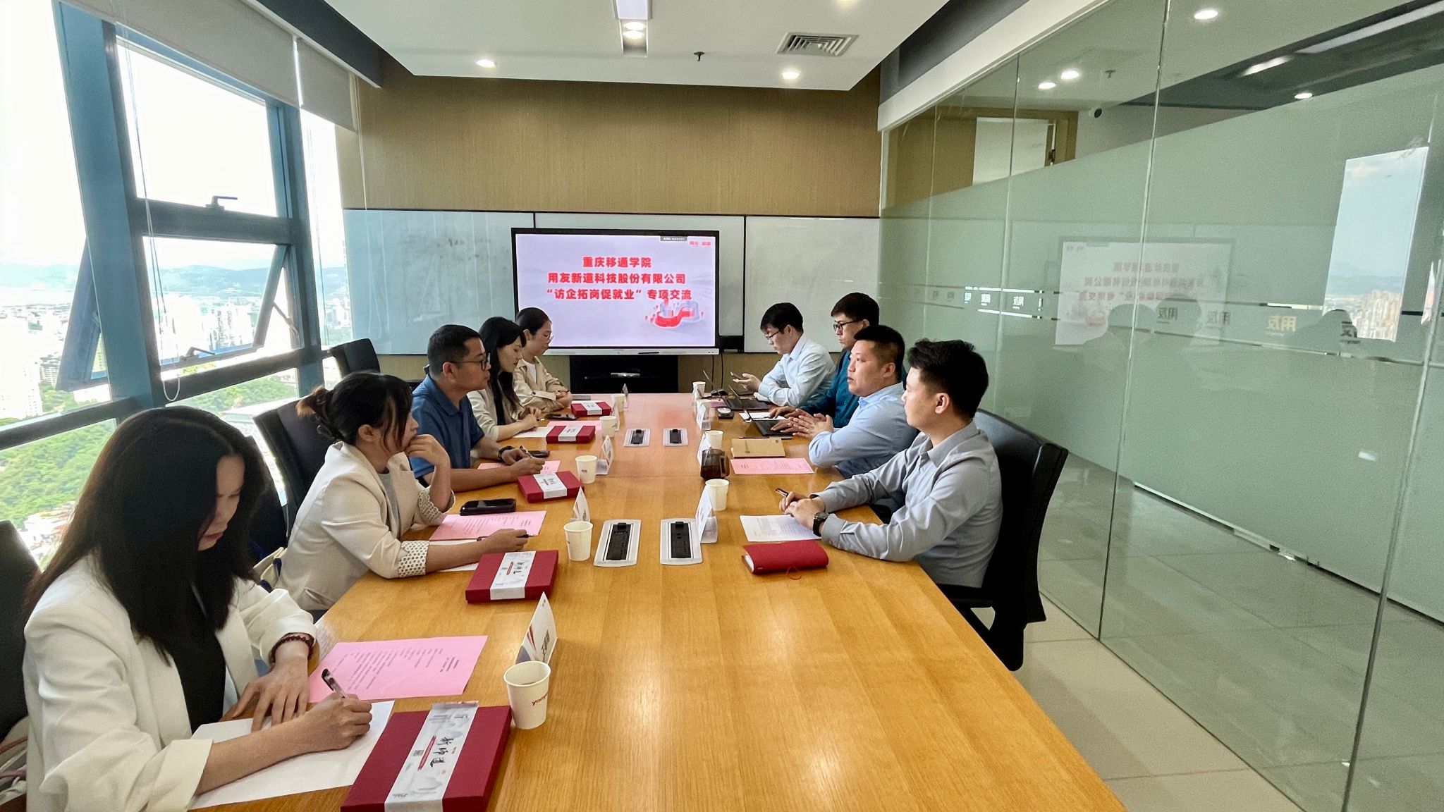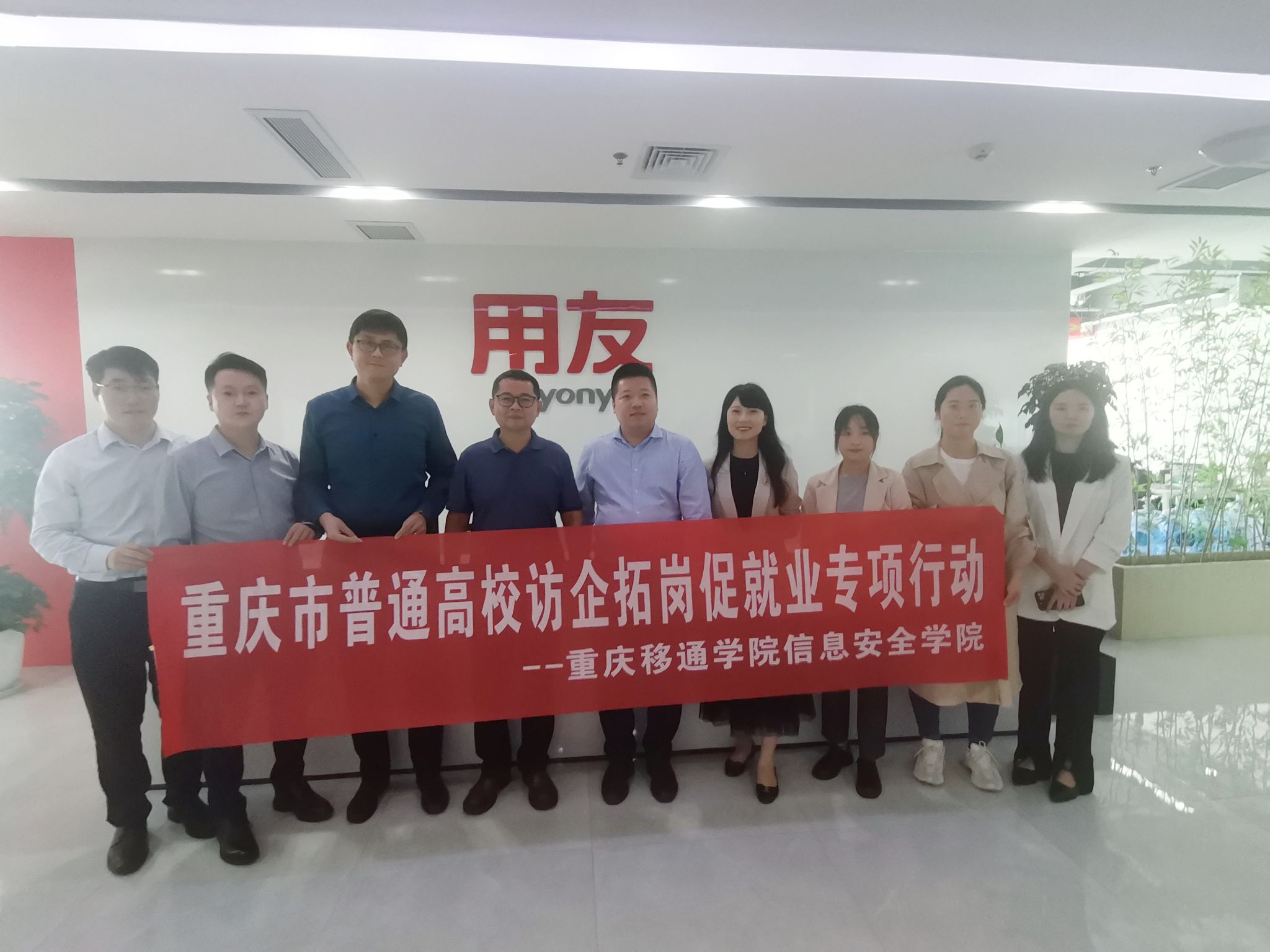 为深入贯彻落实党中央、国务院和重庆市委市政府“稳就业,保民生”工作决策部署,积极响应和推进教育部“访企拓岗促就业”专项行动,落实学校“内涵建设与质量提升”主题年活动,强化校企衔接、深化校企合作,精准对接企业人才需求,拓宽毕业生就业渠道和资源,全力以赴促进毕业生高质量充分就业。4月26日,我校常务副校长王永周带队前往用友新道科技股份有限公司开展访企拓岗促就业专项行动,信息安全学院主持工作副院长王宁、学工副院长尹金维、信息安全教研室主任周小艳、就创中心科员王春梅等人陪同调研。