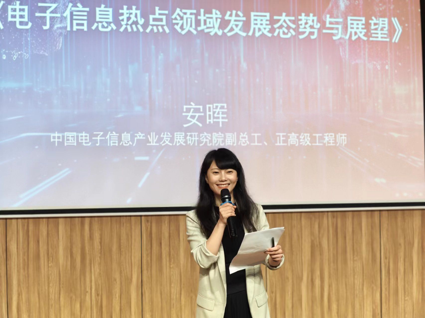 活动最后,王宁院长对本次讲座总结发言。她表示,安总工的讲座内容充实,为大家深入浅出的介绍了电子信息热点领域发展态势与展望,让大家对整个行业的生态有了更深刻的理解。她认为,此次讲座对在场师生来说是非常宝贵的,有助于大家及时了解行业动态,对教学和科研工作都具有重要的指导意义。同时,她也鼓励学生们要积极关注行业发展,把握时代脉搏,努力提升自身的专业素养,为我国电子信息产业的发展贡献自己的力量。