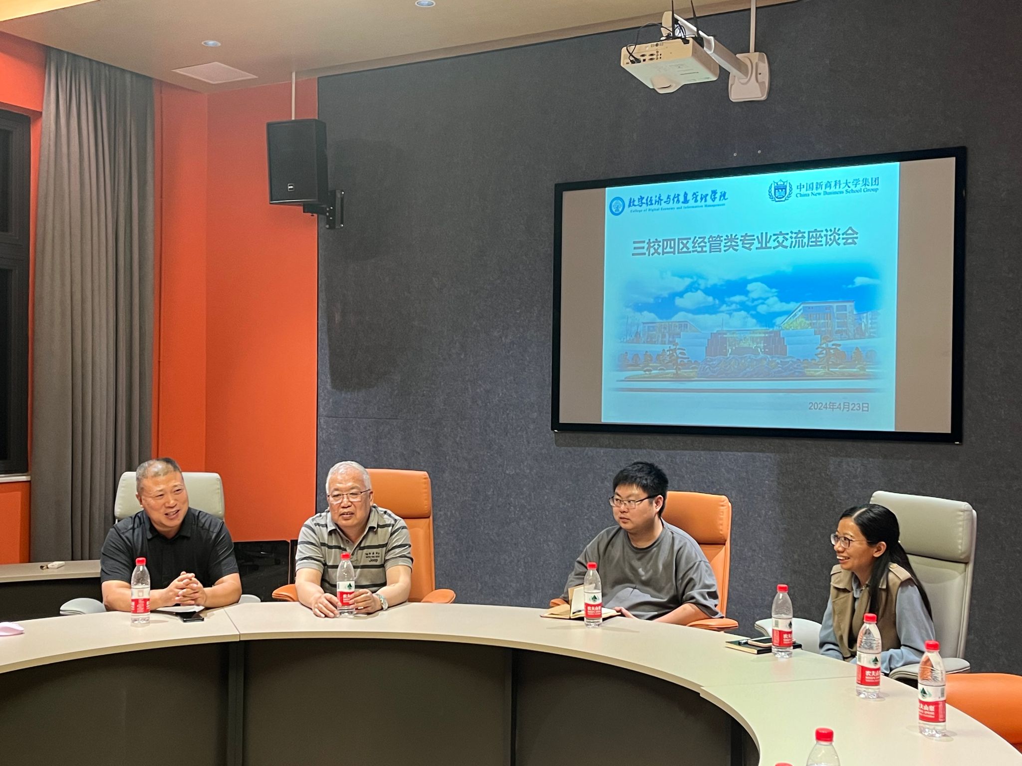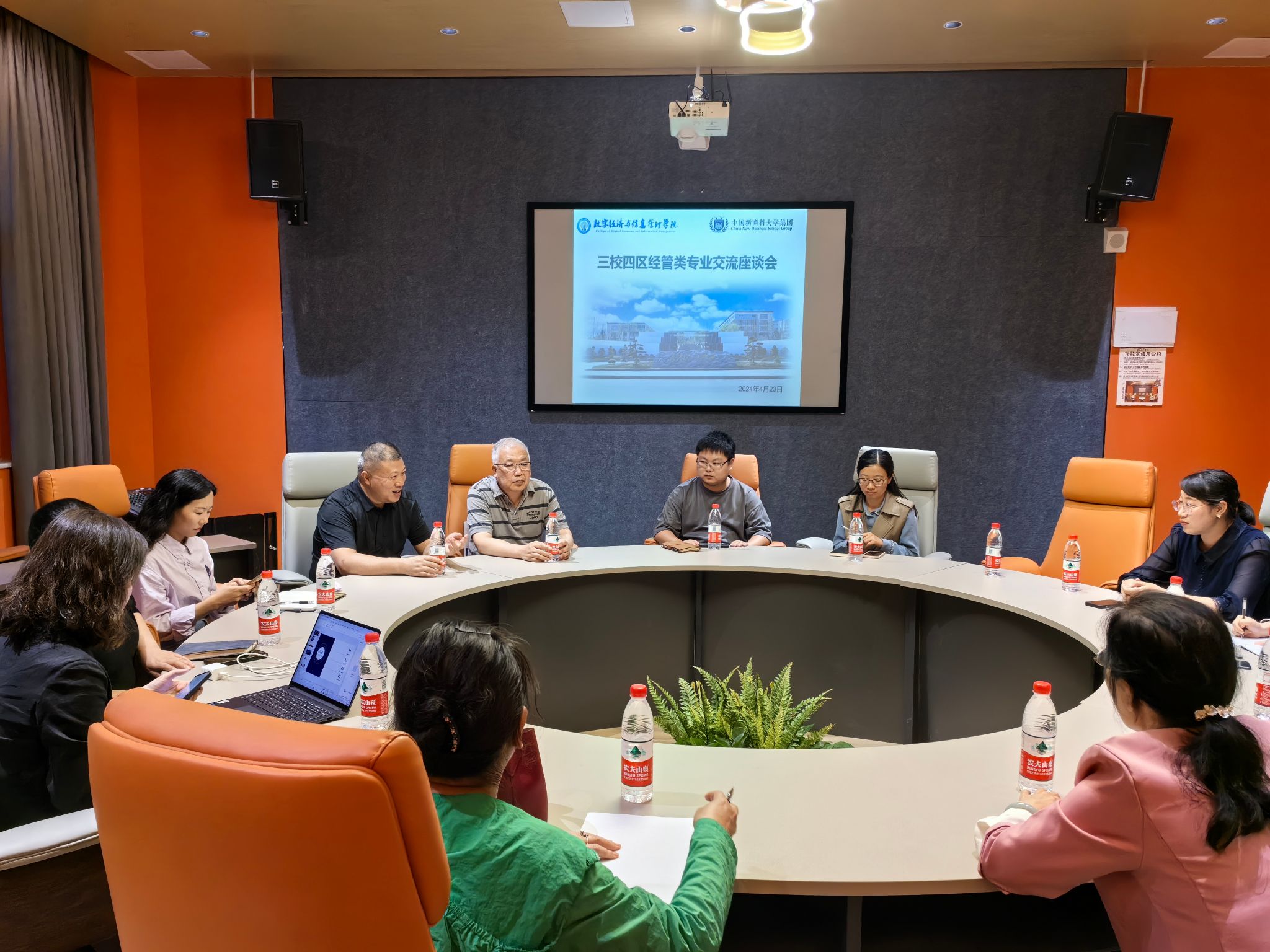 为进一步促进三校四区经管类专业建设的经验交流和资源整合,提升专业建设内涵,数字经济与信息管理学院于4月23日晚上7点在古剑书院龙泉会议室召开三校四区经管类专业交流座谈会。会议由重庆移通学院数信学院院长潘显兵主持,晋中信息学院和泰山科技学院院部领导刘然慧、赵欣、牛晋霞、鹿敏、阎俊爱、赫晓燕、张学银、朱娜,重庆移通学院淬炼·国际商学院副院长曾璐,数信学院骨干教师代表参与会议。