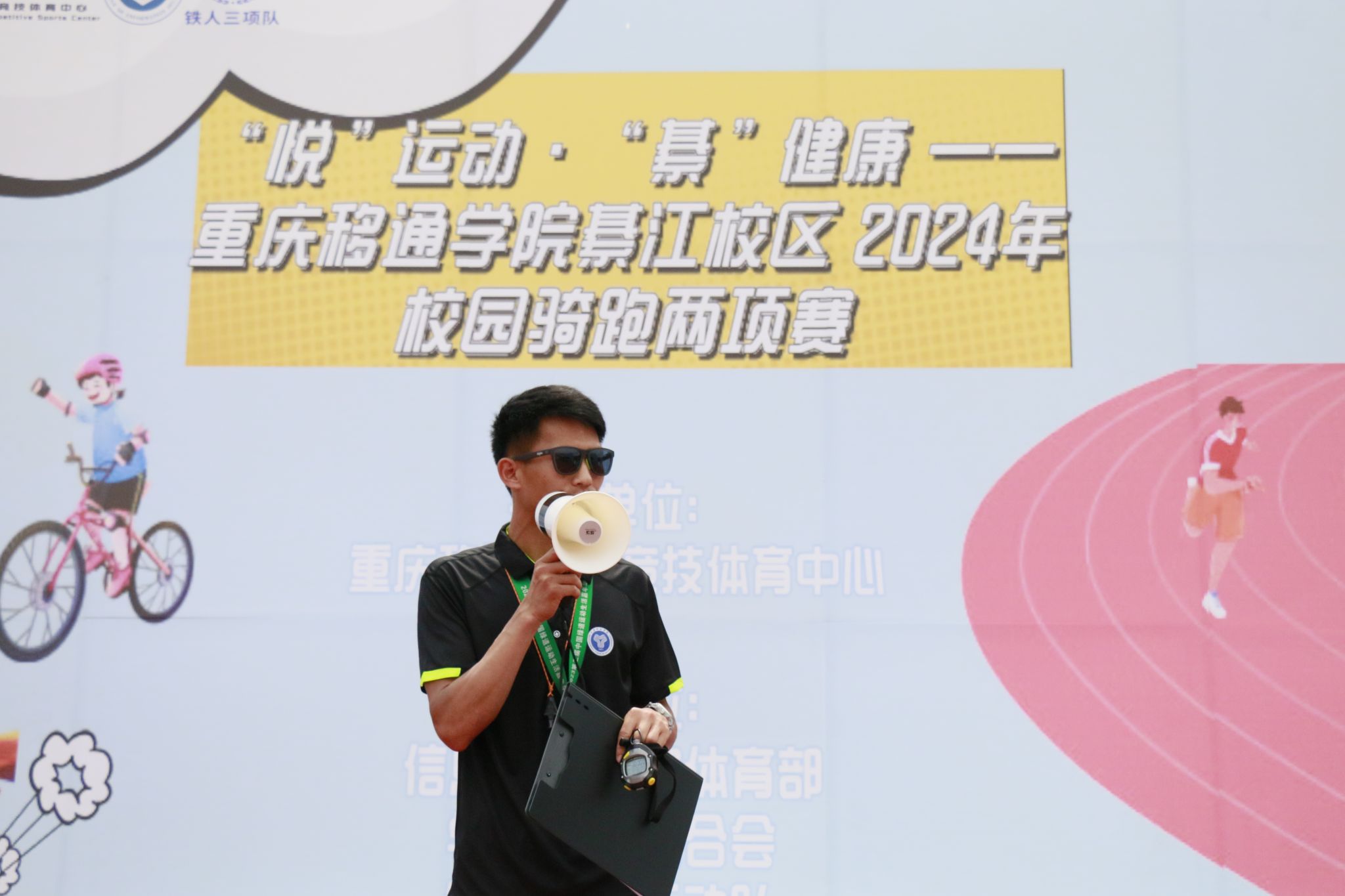 为响应国家对体育事业的重视,落实“体育强国”的指导理念,提升学生的团队协作与竞技水平,由重庆移通学院竞技体育中心主办,信息安全学院体育部、学生体育联合会、铁人三项运动队承办的2024年校园骑跑两项赛于2024年5月15日14:00在綦江校区田径场火热开启。竞技体育中心和信息安全学院坚持学校完满教育理念,鼓励学生在比赛中挑战极限追求完满,展现“文明其精神,野蛮其体魄”的铁人文化。