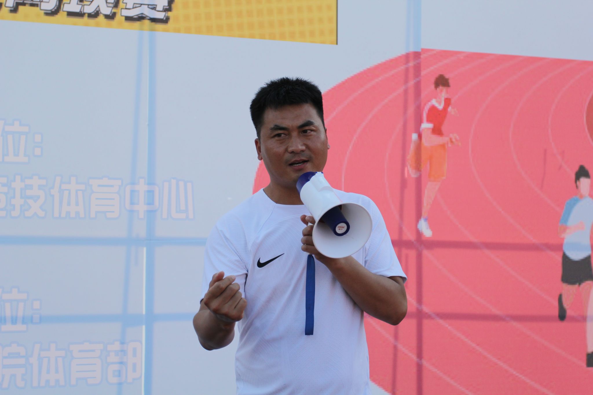 竞技体育中心江华主任发言,他表示,此次骑跑两项赛的成功举办,不仅提升了全校学生的体育竞技意识,也有力地推动了校园体育文化的发展。他强调,此类活动为培养同学们全面发展提供了广阔的舞台,同时也响应了国家关于全民健身的号召,将习近平总书记关于体育事业发展的重要讲话精神落实到实处。