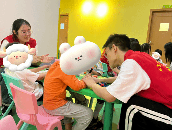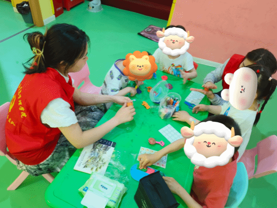 活动现场,志愿者们与孩子们进行了亲密的互动。他们耐心地与孩子们交流,用简单易懂的语言和肢体动作,引导孩子们参与手势舞、开小火车等游戏,同时陪伴他们玩橡皮泥、画画、学习击掌、鼓励儿童说话。在志愿者的陪伴下,孩子们的脸上绽放出了灿烂的笑容,他们的世界因为这些温暖的陪伴而变得更加美好。志愿者们还积极与星贝知儿童成长中心的老师和工作人员交流,了解孩子们的日常的学习和生活情况,共同探讨如何为孩子们创造更好的成长环境。