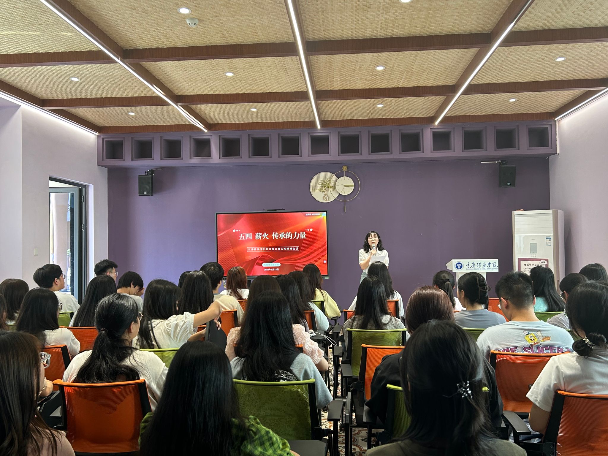 为进一步用好红色资源,弘扬五四精神,深化爱国主义教育,引导大学生深入学习革命先辈的奋斗精神,激发大学生积极担当作为的热情。2024年5月15日,马克思主义基本原理教研室特邀“江津陈独秀旧居”宣讲团来校开展“五四·薪火·传承的力量”主题宣讲。此次活动由马克思主义基本原理教研室主办、大学生“四史”学习研究社团协办,马克思主义基本原理教研室李清泉老师主持,江津陈独秀旧居王昌旭主任及四位讲解老师主讲,马克思主义基本原理教研室主任陈静副教授、覃志蓉老师及綦江校区40余名学生代表参与活动。