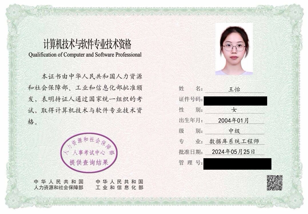 终于,在经历了一个多月的紧张备考后,王怡同学和陶杨阳同学迎来了检验成果的时刻。在软考中级工程师的考试中,他们凭借扎实的专业知识和出色的应试能力,成功通过了中级数据库工程师的认证。这一消息传来,不仅让计算机学院创新中心的师生们欢欣鼓舞,也引起了全校师生的广泛关注。
