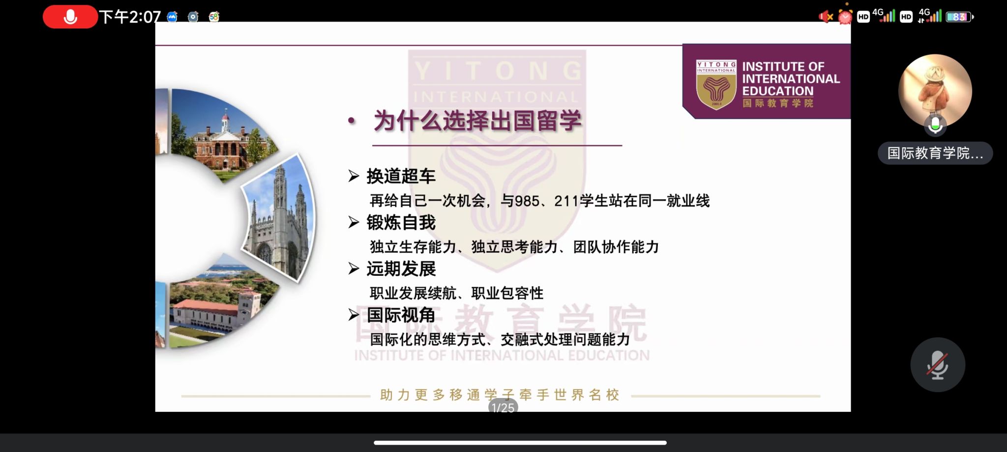 紧接着,姜院长为在座的各位老师介绍了“4+1”&“2+1”本硕直通国际教育班项目,综合本项目的用时短、效率高、成果显著等特点,选择本项目意味着在重庆移通学院完成4年的本科生毕业后可以直接升入世界前200名的大学,硕士入读学校排名等同于南京大学、武汉大学,有效帮助学生缓解升学压力,除此之外,姜姝老师介绍了涉及本项目的多个国际院校:英国伦敦大学学院、墨尔本大学、悉尼大学、新南威尔士大学、爱丁堡大学,学生可以通过本项目走进世界名校,实现升学梦想。