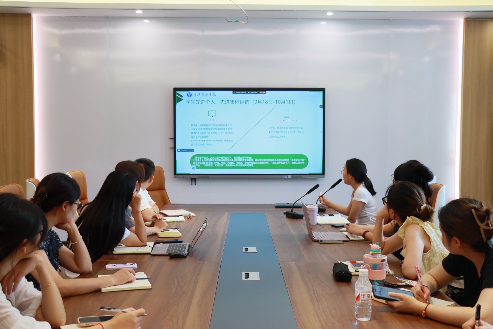 为全面部署学期资助工作,加强资助政策落实、充分发挥资助育人功能,9月14日上午,綦江校区学生处组织召开资助工作专题培训会。会议深入解读资助工作的政策要求,并对新版学工系统操作使用进行全方位介绍。学生处副处长唐尚静、各学院学生工作负责人、学生处及各学院资助专员在新图书馆会议室参会,全体辅导员线上参会,会议由学生科科长陈永书主持。