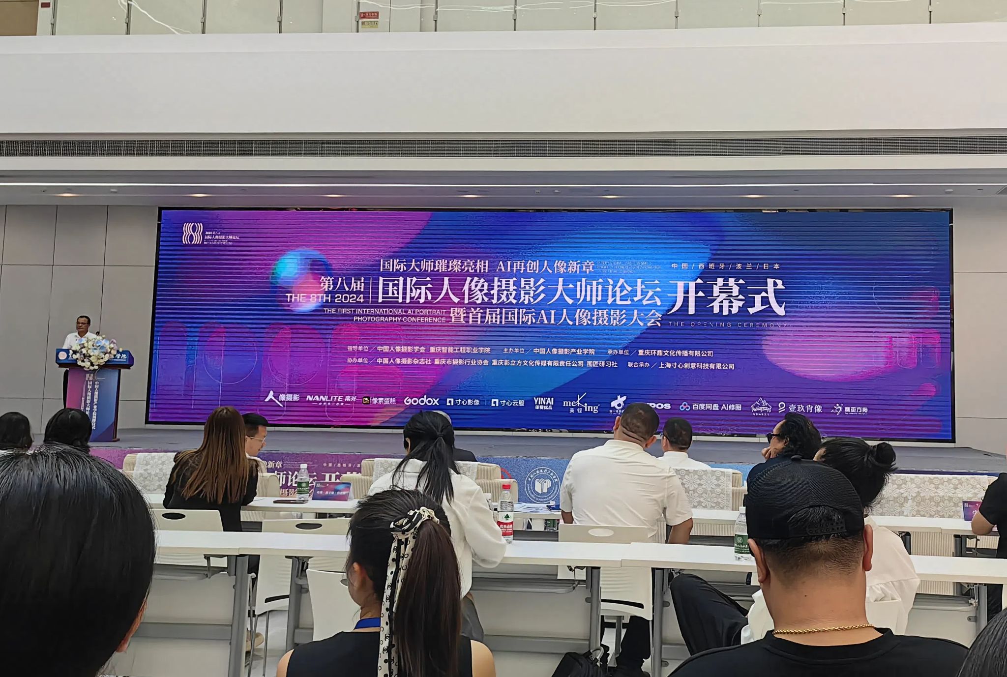 6月24日第八届国际人像摄影大师论坛暨首届国际AI人像摄影大会在重庆智能工程职业学院举行,来自中国人像摄影杂志社、全国知名摄影团体、头部人像摄影品牌、国内人像摄影专家以及学习交流企业代表等近500人参会。戏剧影视学院电影制作专业负责人周极、骨干教师谢淼作为教师代表,以学者的姿态和求知的热情,踏上了为期三天的探索光影新境界的征途。