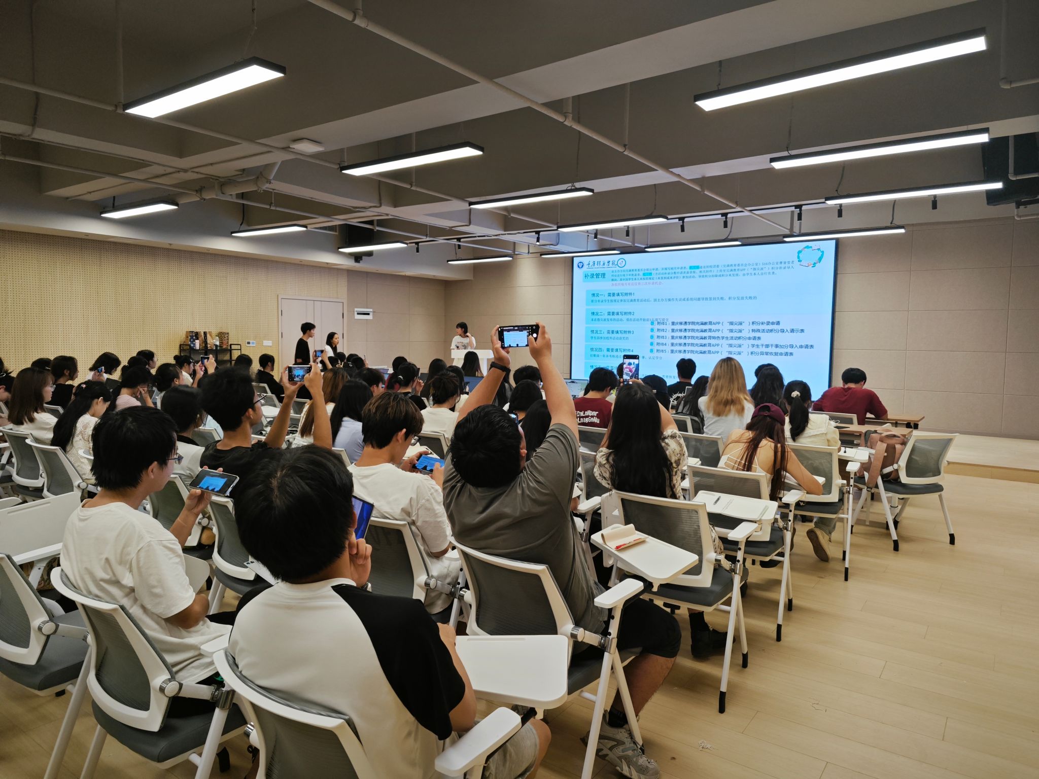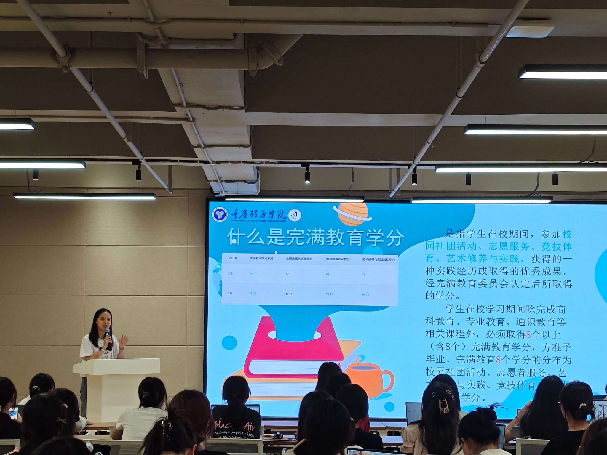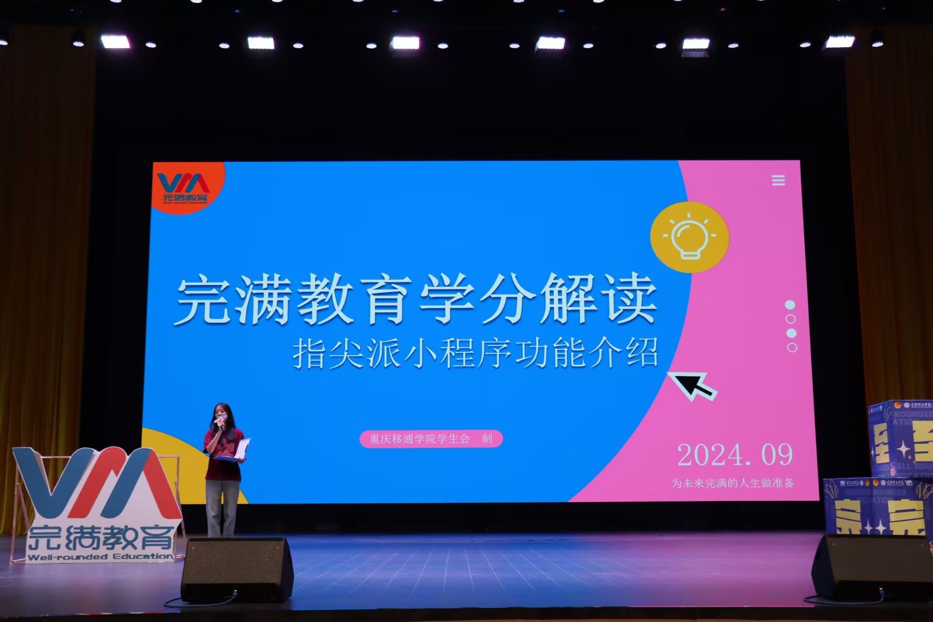 自指尖派宣讲培训小组成立以来,从管理办法培训、视频录制、PPT制作等方面完成了多项前期工作,从9月25日起在綦艺大剧院、贤者楼423报告厅及贤者楼131报告厅共组织开展了14场完满教育学分解读宣讲,9月23日起,全校6000+新生同学到场参与,达到新生100%覆盖。此外,在培训现场,校学生会执行主席候选人高钰伟和校学生会学习部预备干部黄奥,均用自身经历传授新生学分修读秘籍,为在场新生阐述完满教育学分与积分的区别,解释积分转化要求。同时现场进行“指尖派”小程序功能介绍,带领现场新生一同完成指尖派的注册与登录,教学新生活动筛选、报名与签退基本流程操作,指导新生进行完满教育学分修读。引导新生更好的了解学校的教学理念,更好地融入和体验大学生活,为未来完满的人生做准备。