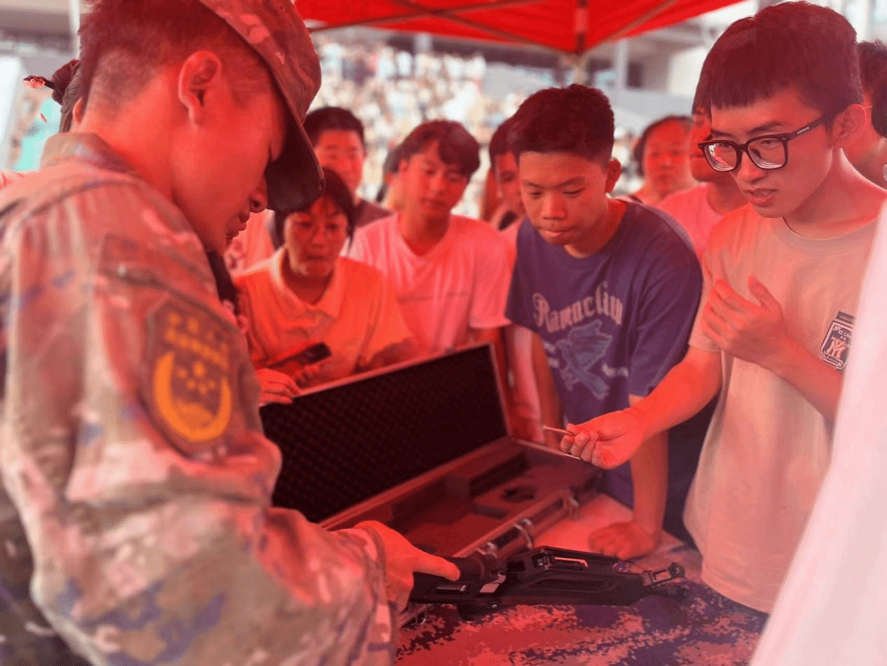 学生们怀着好奇与敬畏的心情逐一接触这些象征力量与勇气的装备,他们轻抚枪械,探寻其工艺美学,感受那凝聚匠心的独特重量。这份体验不仅仅是对军事装备的直观认识,更是一种对国家防卫力量的无声致敬。每个人的脸上都洋溢着兴奋与思考,这不仅是技术的展示,也是对意志与勇气的启迪。在此刻,国防不再是遥远的概念,而是触手可及的现实,激发了他们对保家卫国事业更深的敬意和理解。