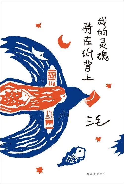 接着,志琴同学与我们推荐了她最近在阅读的一本书——三毛的《我的灵魂骑在纸背上》。里面收录了一些三毛在国外求学期间写给家人和友人的信,“但对我来说,这本书最吸引人的地方并非内容本身,而是它的封面设计。它以一只展翅的鸟作为主图,里面则是一条鱼,巧妙地运用了书信的代名词——鱼雁。而在鱼和鸟之间还有一个张开双臂的女孩子形象,以此代表了三毛自己。”
