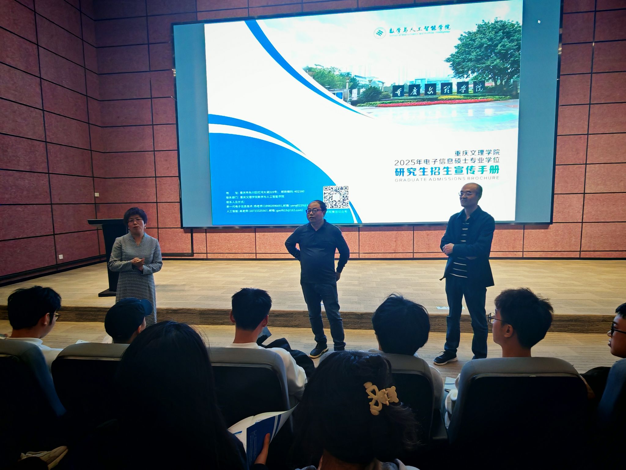 近日,为进一步激发广大学子的考研热情,明确考研目标,提升备考效率,重庆文理学院特地组织了一支由资深教师和招生办公室工作人员组成的宣讲团,走进了重庆移通学院綦江校区,为计算机学院、大数据学院、信息安全学院的学生们带来了一场别开生面的考研宣讲活动。