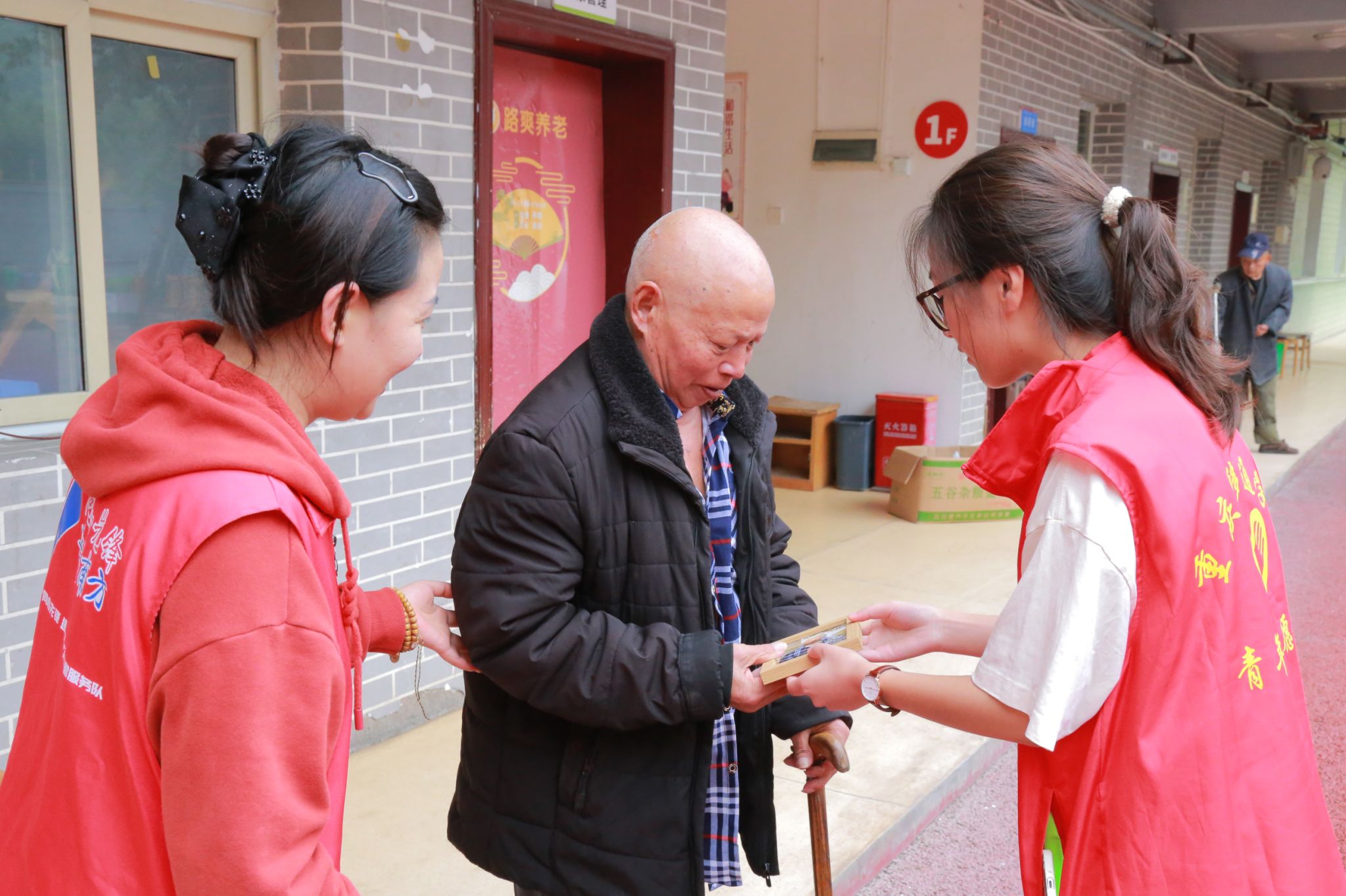 志愿者们还与老人们亲切地唠起了家常,询问他们的身体状况、生活习惯以及兴趣爱好,并热情分享了自己的校园生活。老人们也打开了话匣子,讲述着自己的往事与生活中的点滴趣事。有的老人回忆起年轻时的奋斗经历,有的则讲述着与家人的温馨时光。志愿者们则在一旁认真倾听,不时点头微笑,用真诚和爱心搭建起与老人们沟通的桥梁。