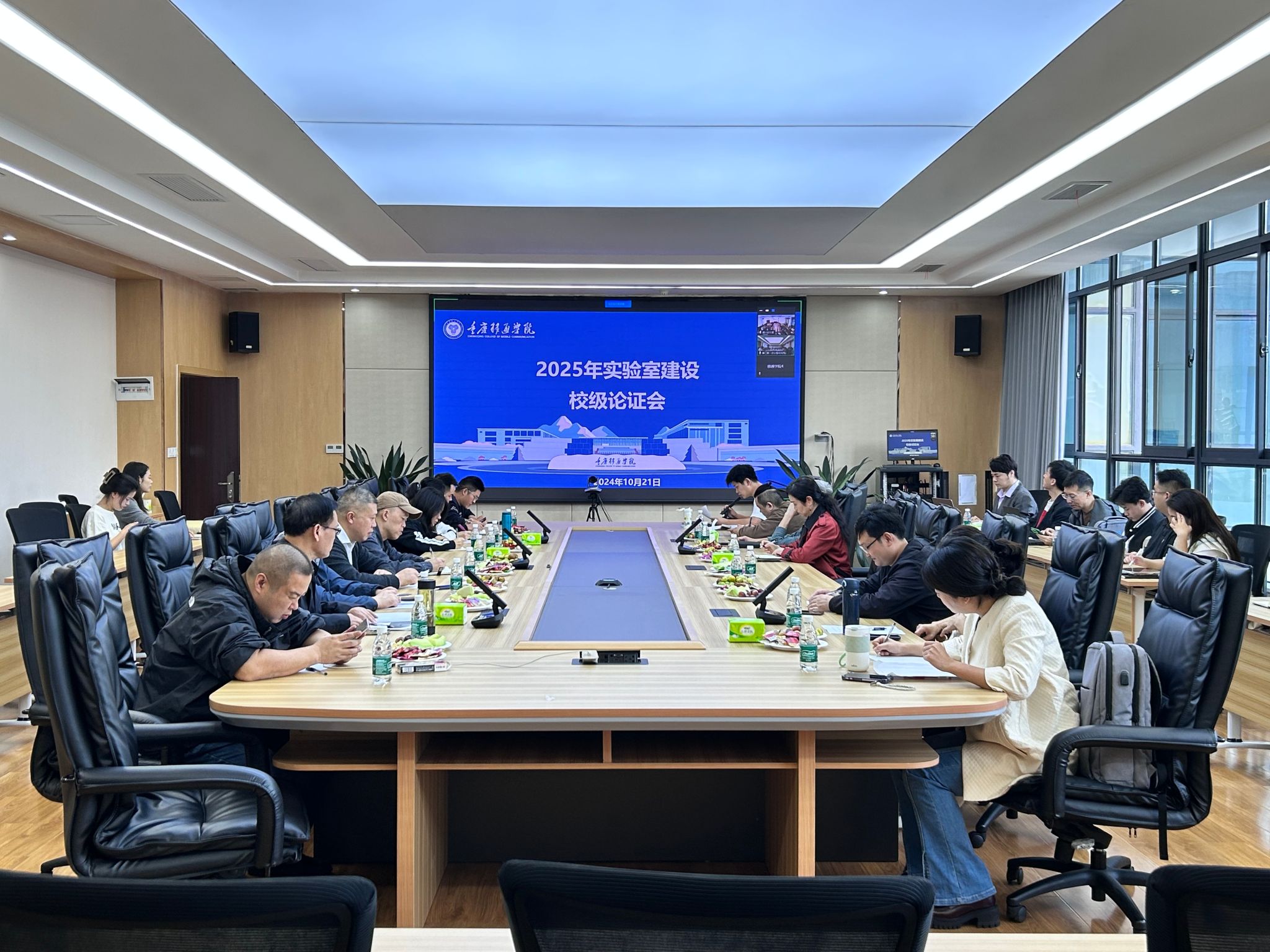 10月21日,重庆移通学院双校区采用线上线下相结合的会议方式,在合川校区行政楼107会议室和綦江校区瀛山图书馆 424 会议室同步召开了2025年实验室建设校级论证会。校领导吕翊、王永周、周伟、孙玺、尹浩亮、刘枚,实训中心、教务处、网信中心、资产管理处、财务处负责人,论证专家,各相关二级学院院长、教学副院长、相关骨干教师参加了会议。会议由綦江校区实训中心主任郭爽主持。