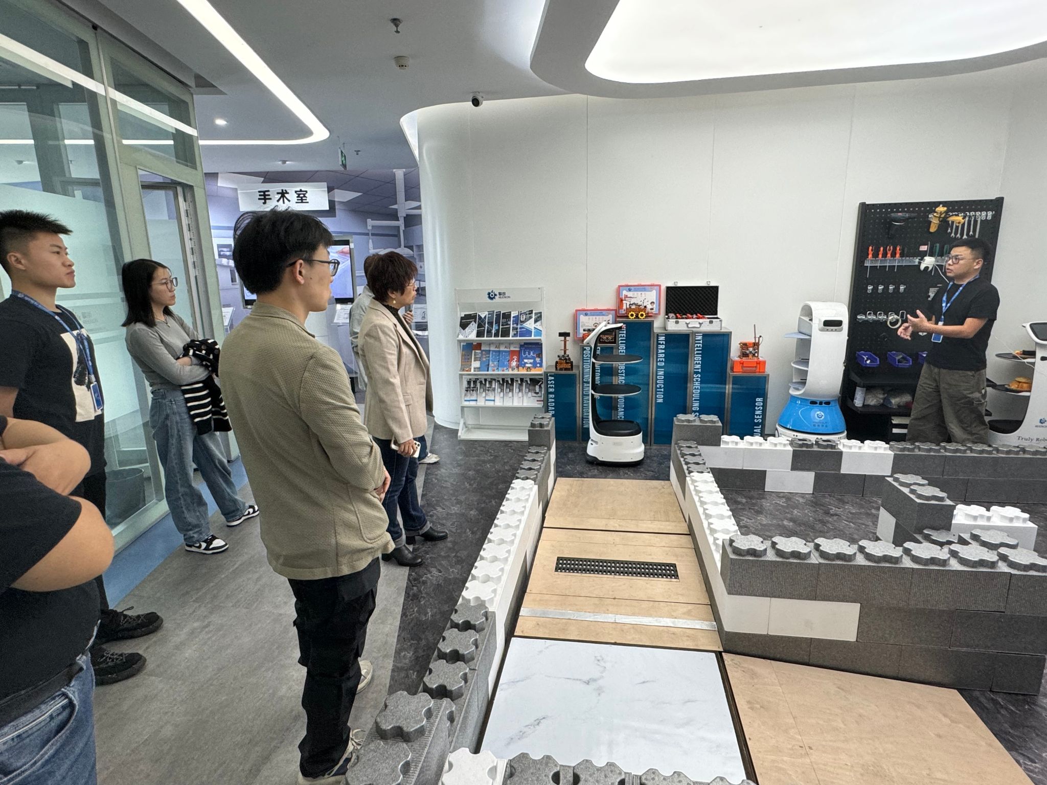 交流活动中,上海擎朗智能科技有限公司解决方案总监张竞宇,产品总监刘宏韬对重庆移通学院一行的到来表示热烈欢迎,并详细介绍了公司的发展历程、核心技术、市场应用及未来规划。擎朗智能在环境感知、预测决策、运动控制等关键技术环节取得了显著突破,其产品在全球范围内得到了广泛应用。