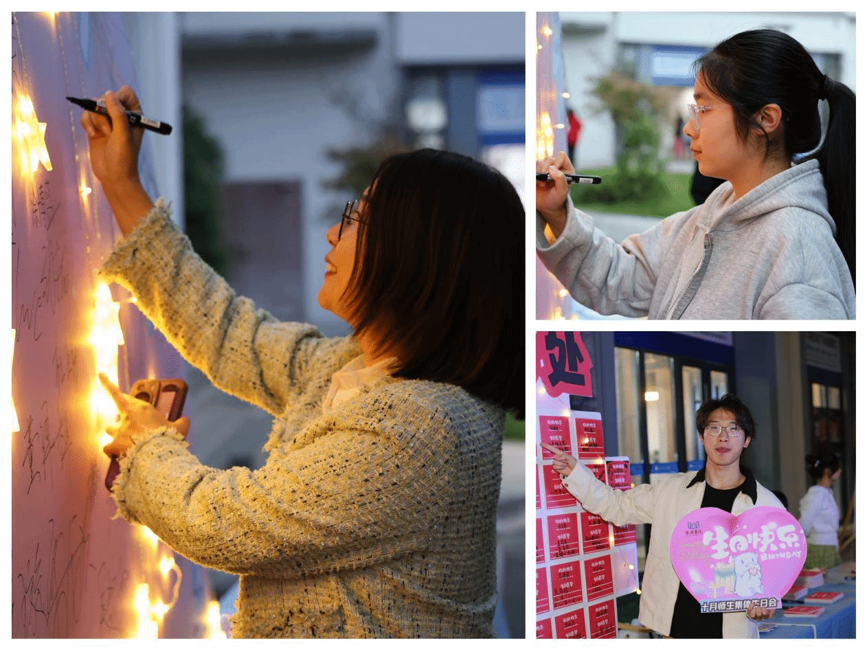 光是梦,编织回忆的长廊,时光是路,连接前行的方向。在工作人员的指引下,寿星们走过回忆的花路,写下此刻的心愿,签下自己的姓名,望向过往的印记,同学们在踏入生日会场的那刻仿佛就落入了时光的长廊,从第1次到第20次是书院陪伴我们走过的历程,亦是同学们成长的痕迹。