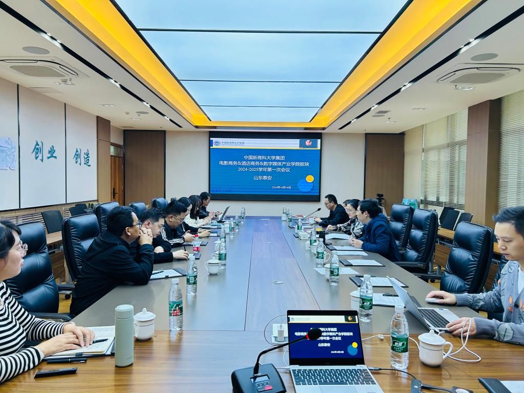10月18日下午13:00,中国新商科大学集团电影商务&酒店商务&数字媒体产业学院板块2024-2025学年第一次会议在山东泰山科技学院图书馆第一会议室召开。集团电影&酒店商务产业学院板块主管张平、龙用意,山东泰山科技学院校长助理解嵘,三校四区相关负责人、各酒店&电影院负责人出席会议。会议由张平主持。