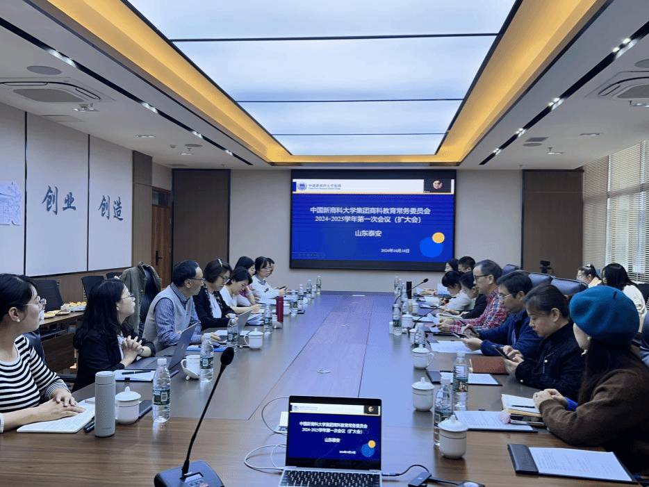 为进一步推进新商科建设,提升商科教育质量,10月18日,中国新商科大学集团商科教育2024-2025学年第一次扩大会议在山东泰山科技学院图书馆第一会议室召开。集团商科教育委员会,三校四区校领导、教师代表参加。会议由集团商科教育委员会主任廖成林教授主持。