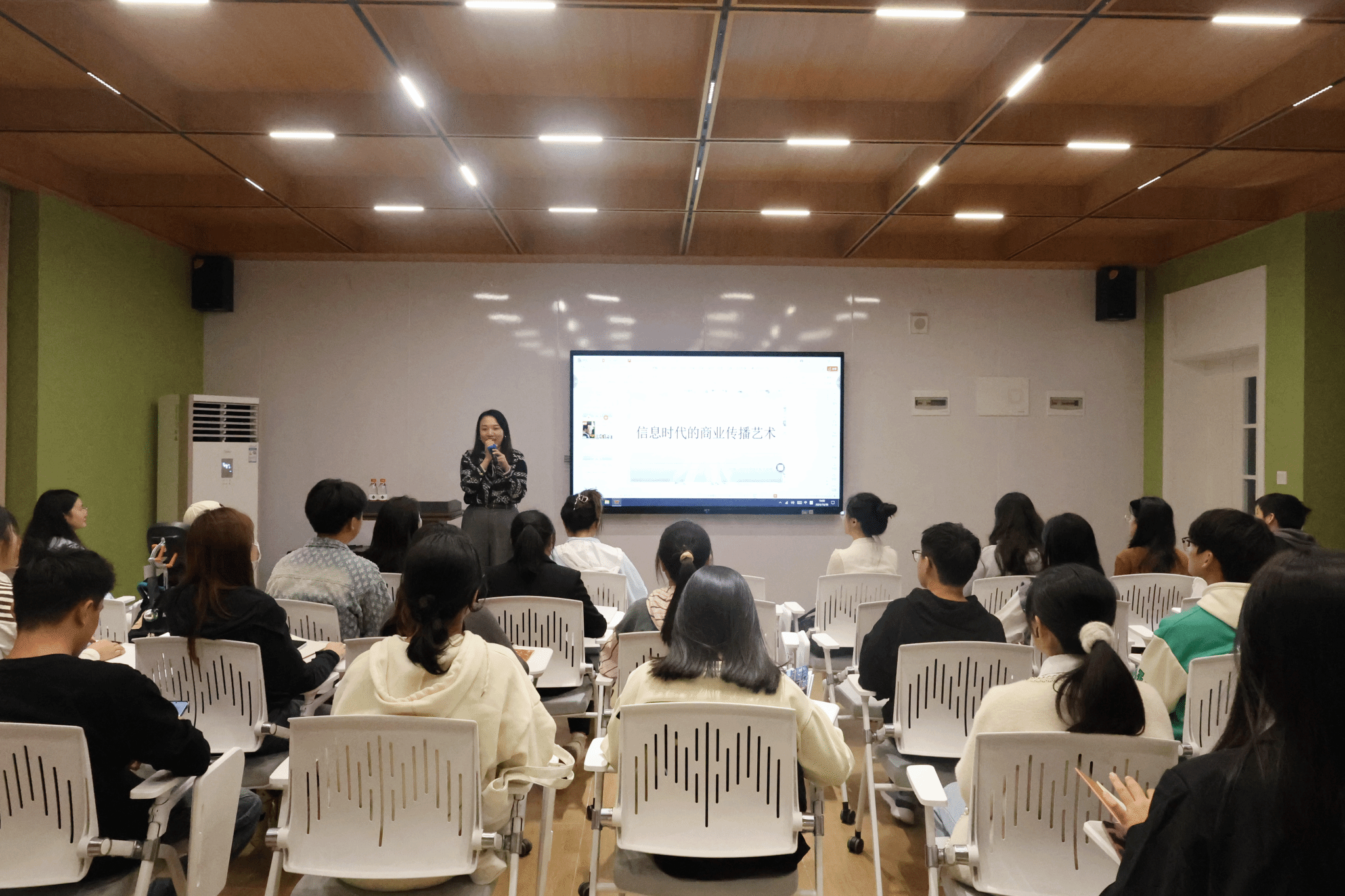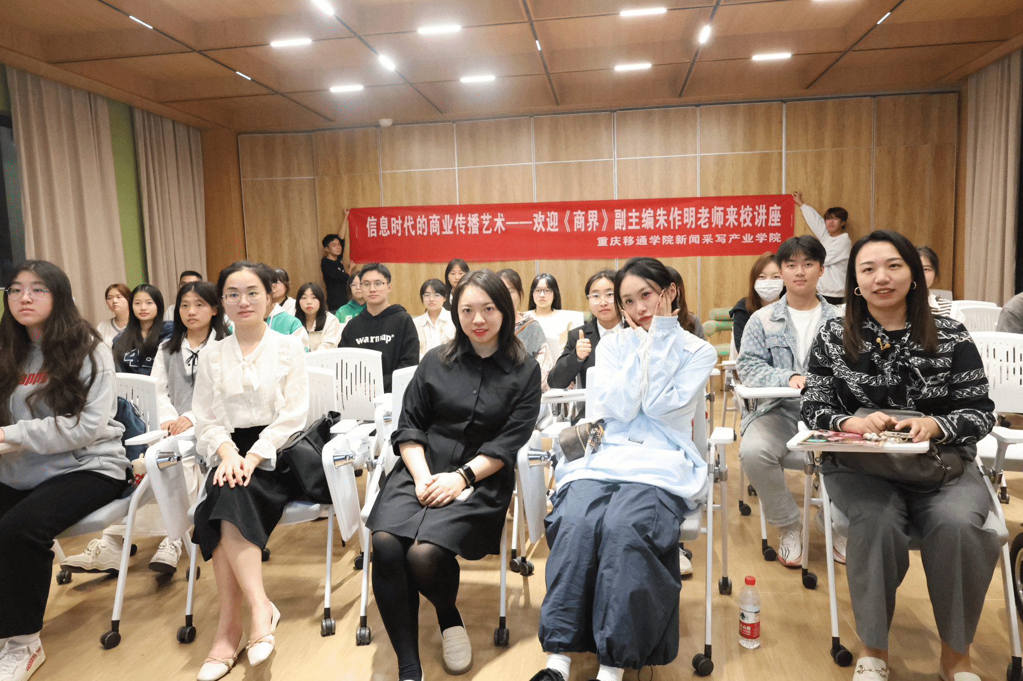 10月30日晚7点,《商界》杂志副主编、商界新媒体主编,一线优秀财经记者朱作明老师来到綦江校区南江书院博学悦享互动空间,为新采学子做了一场名为“信息时代的商业传播艺术”的讲座,綦江校区师生共计40余名参加。