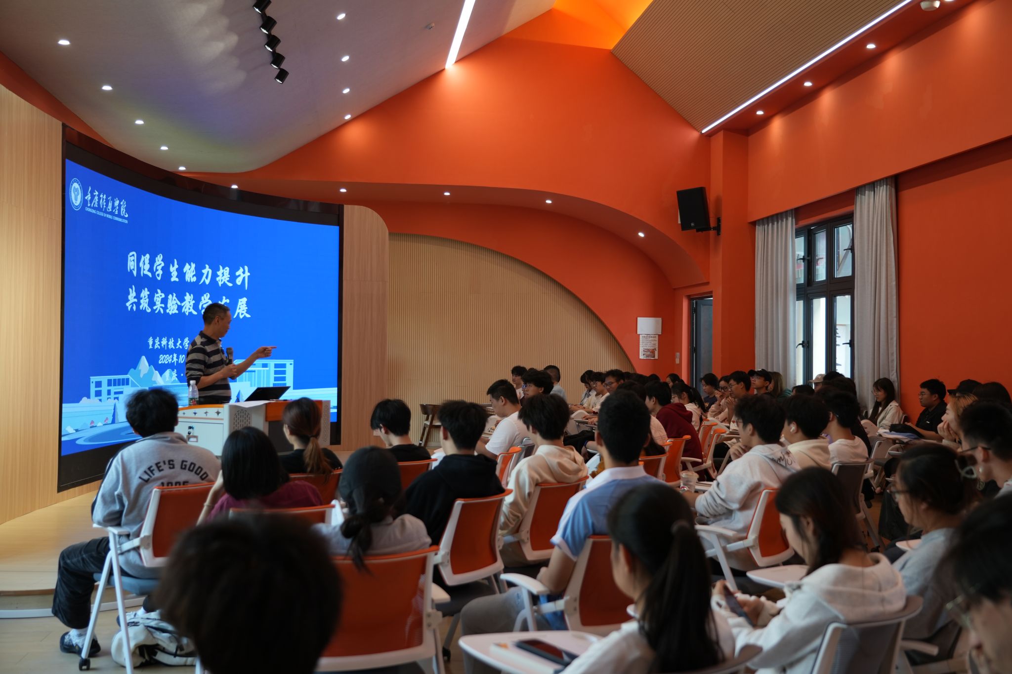 10月30日,在秋风送爽硕果盈仓之际,学校在古剑书院含光报告厅开展“同促学生能力提升,共筑实验教学发展”座谈会以及“高校实验室建设与应用探索”专题讲座,讲座邀请了重庆科技大学许弟建副教授进行分享交流,各学院学生代表参与座谈会,实训中心全体教师及各实验教学单位教师代表参与讲座。