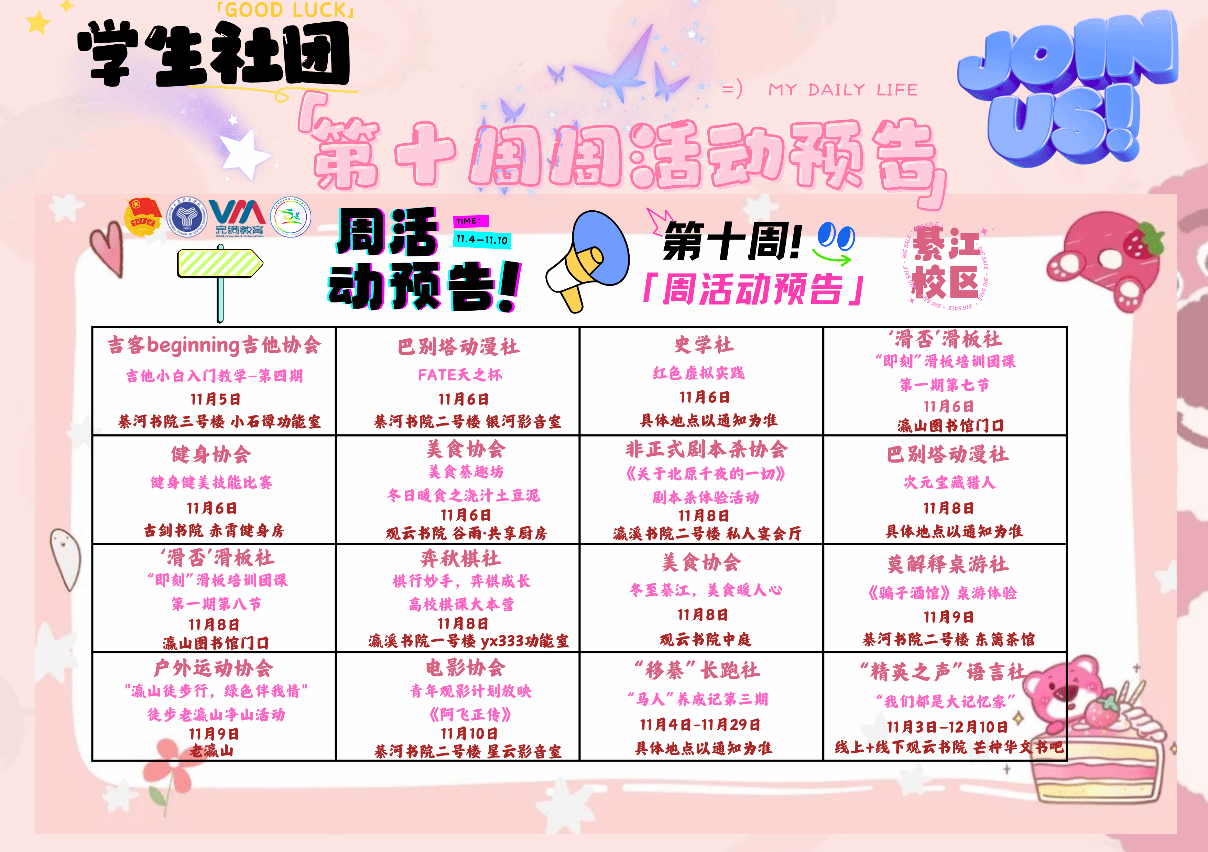 精彩活动持续进行中,下周邀请各位王子、公主们一起体验愉快的社团时光!