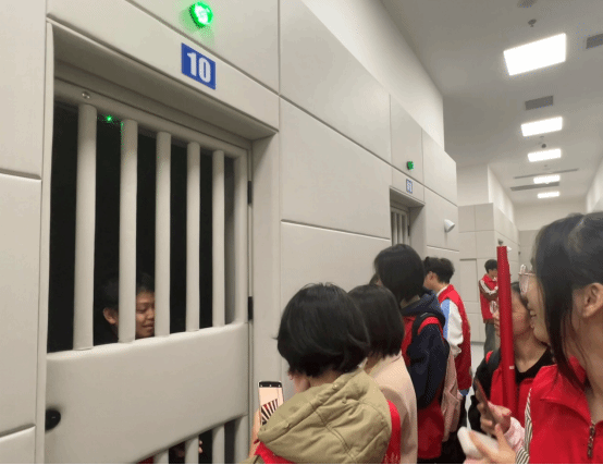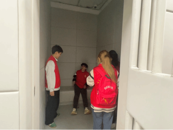 活动伊始,綦江区人民法院刑事一庭李晶法官带领师生们参观了法院的羁押室,羁押室属于特殊监管区域,为了防止被羁押人员自残自伤,羁押室设计了安全保障措施,其人性化的设计和严格的安全保障措施让师生觉得法律不是冰冷的法律条文,而是用一双有温度的“手掌”在维护着社会的长治久安。师生通过沉浸式体验羁押室的封闭感受到了法律对于违法行为的惩治力度,这不仅让学生们直观地了解到法律在保障人权和维护社会秩序方面的细致考量。