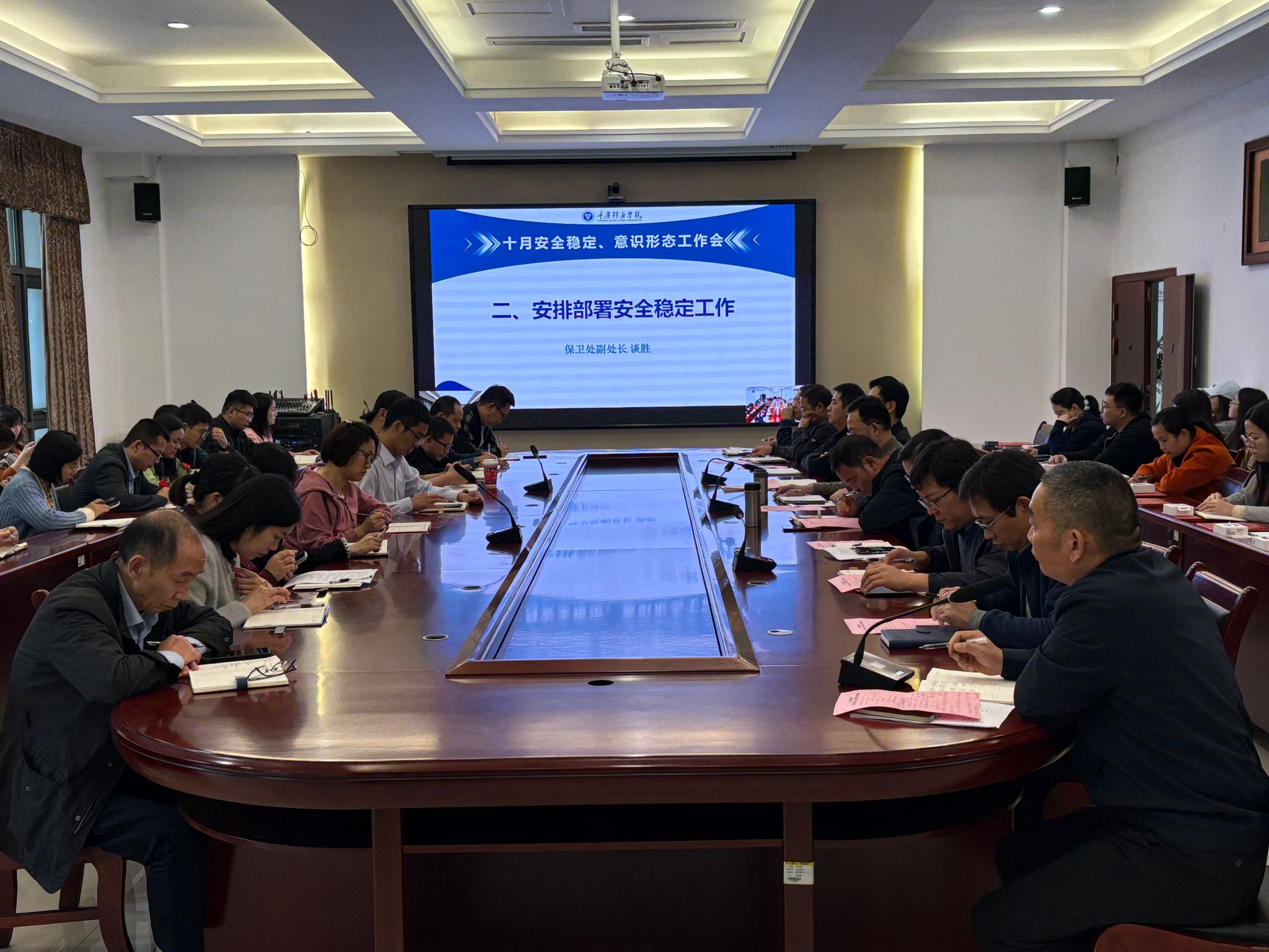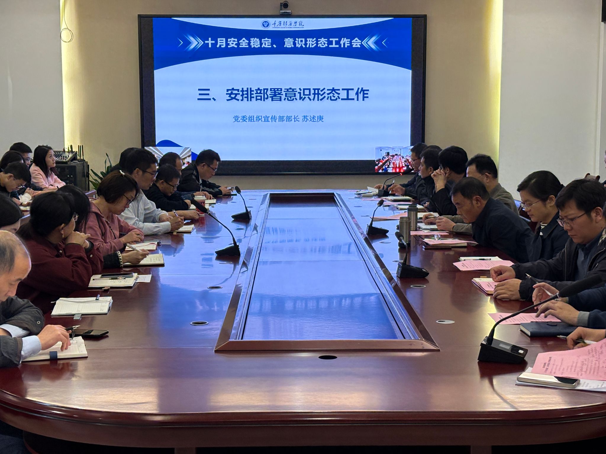 党委宣传部部长苏述庚对意识形态工作进行总结部署。校区在意识形态与安全管理工作取得了显著的新进展,学校成功举办了诸多大型活动,安全保卫工作落实得十分到位,敏感时间节点的管理较好。11月要对电器使用安全、网站更新以及教学管理等重要事项落实到位。