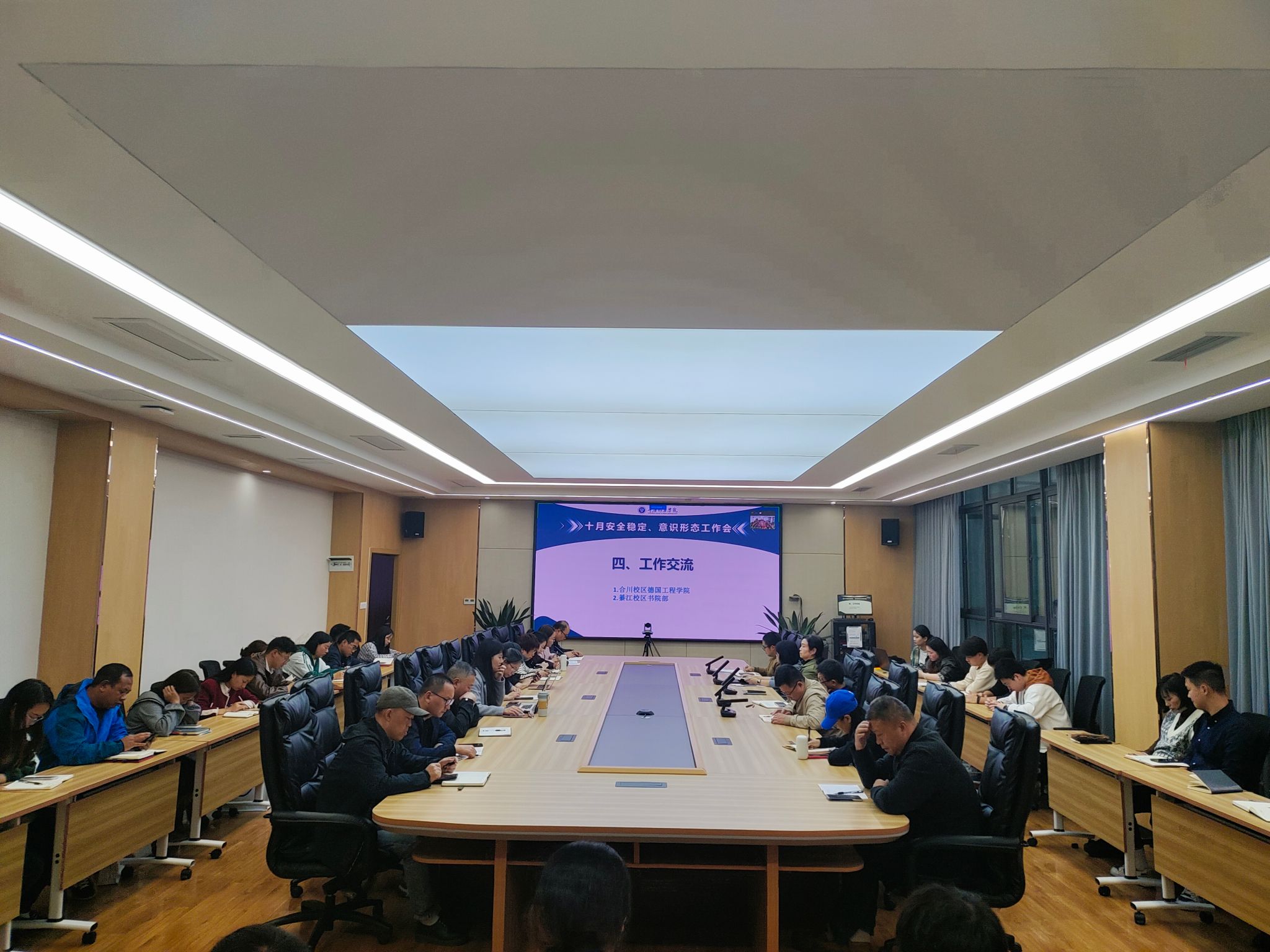 綦江校区安稳办主任谈胜对月度安稳工作进行汇报和部署。近期校园安全管理工作稳步推进,涵盖消防安全、交通、宣传教育、设施修复、心理健康、防盗防诈骗等多个方面。重点对10月双校区诈骗情况进行通报,希望各单位能够通过各类警示案件明确反诈工作开展方向,持续加强反诈教育。