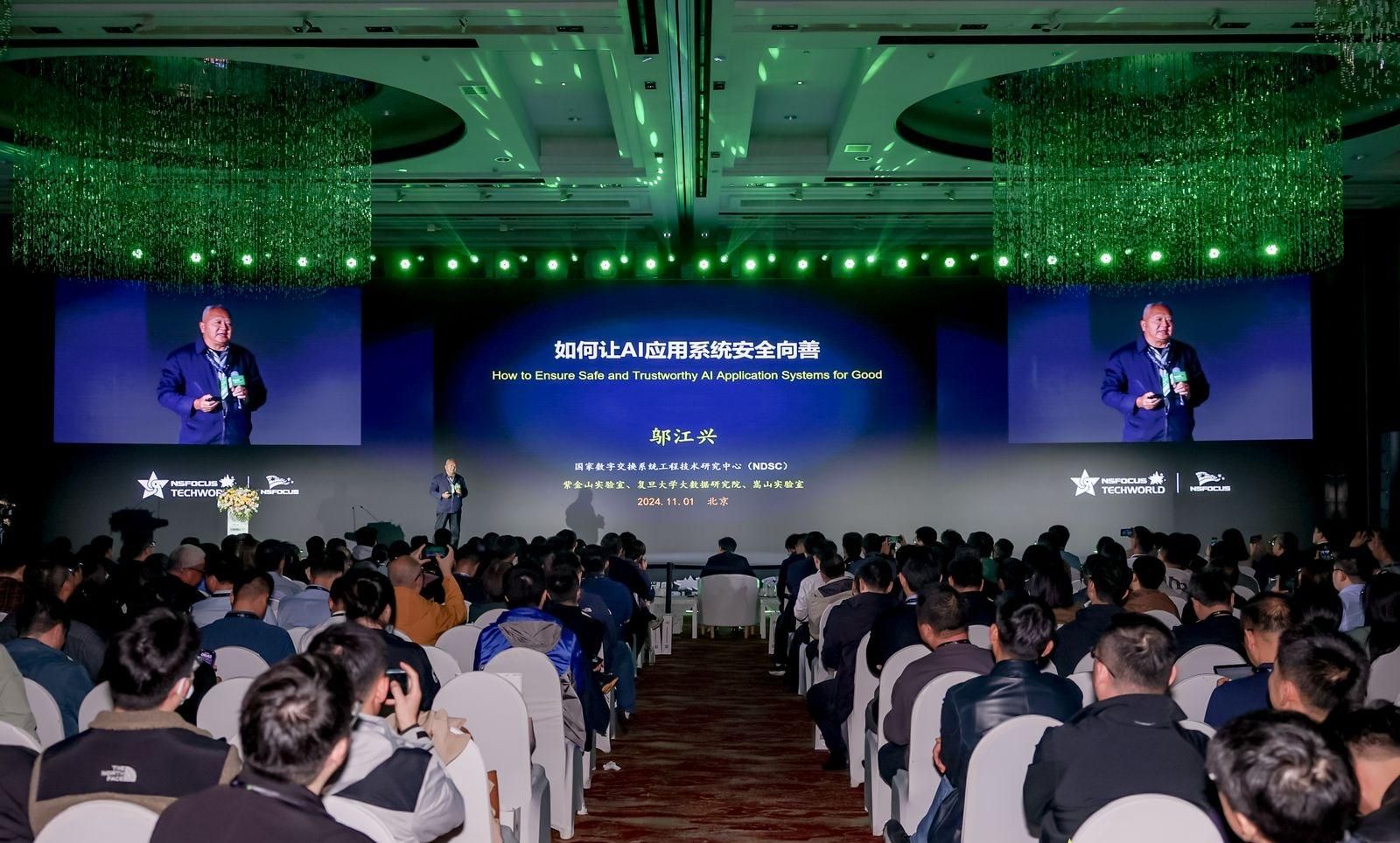 11月1日,王宁、代永亮等一行人参加了大会的论坛。绿盟科技董事长胡忠华发表了致辞,强调了技术研究与创新对于构建可信任的安全智能生态的重要性。随后,中国工程院邬江兴院士、中国科学院冯登国院士分别就人工智能安全问题进行剖析,并从政策法规制定、前沿技术探索和创新能力提升三个维度思考应对之策。工信部、教育部及行业专家大咖围绕数据安全、AI+安全、工业数据安全、网络安全等进行了精彩演讲。“云+AI” 智能融合正在引领新的未来,在AI风险已成为既定现实的当下,人工智能的治理规则与风险管理亦不容忽视。