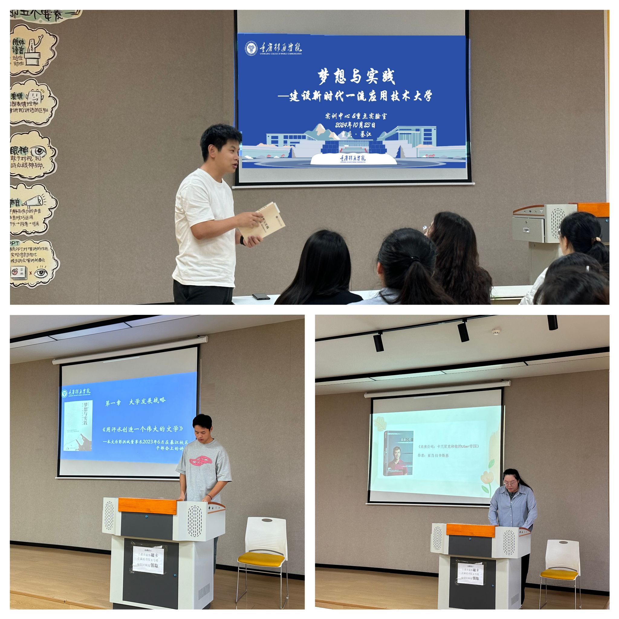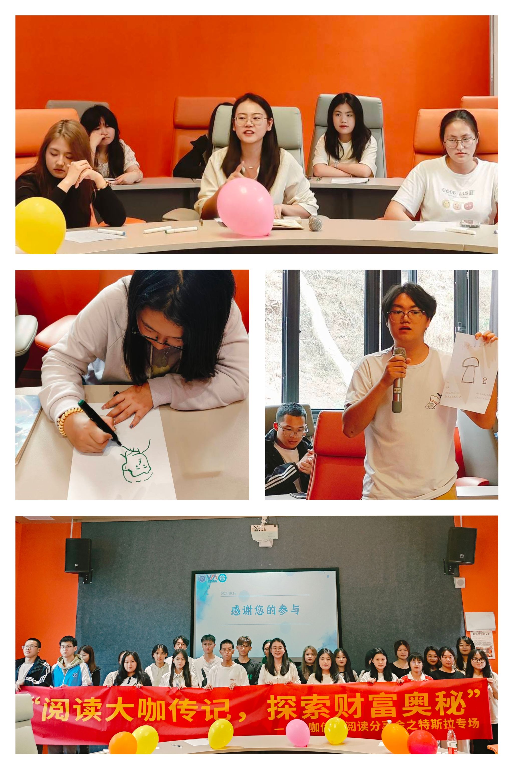 数字经济与信息管理学院(綦江校区)为陶冶学生们的高尚情操和趣味,数字经济与信息管理学院于10月开展了“红色印记·智慧启航”大咖阅读交流会主题活动及“阅读大咖传记,探索财富奥秘”——信息产业大咖传记阅读分享会人物系列之特斯拉专场、“以书会友,智启未来”信息产业大咖传记阅读分享会人物系列之马云专场,创新性地采用“击鼓传花”趣味游戏与“你心目中的特斯拉”趣味绘画的方式加深同学们对大咖特斯拉的了解,希望同学们从大咖的传奇故事中汲取人生智慧并成为有责任有担当的新时代青年。马克思主义学院(合川校区)10月10日,形势与政策教研室、中国近代史纲要教研室的老师组织举办了以“阅读启迪智慧,大咖共话书香”为主题的大咖阅读分享活动,共计开展信息产业大咖系列活动4次,覆盖师生300余人次。