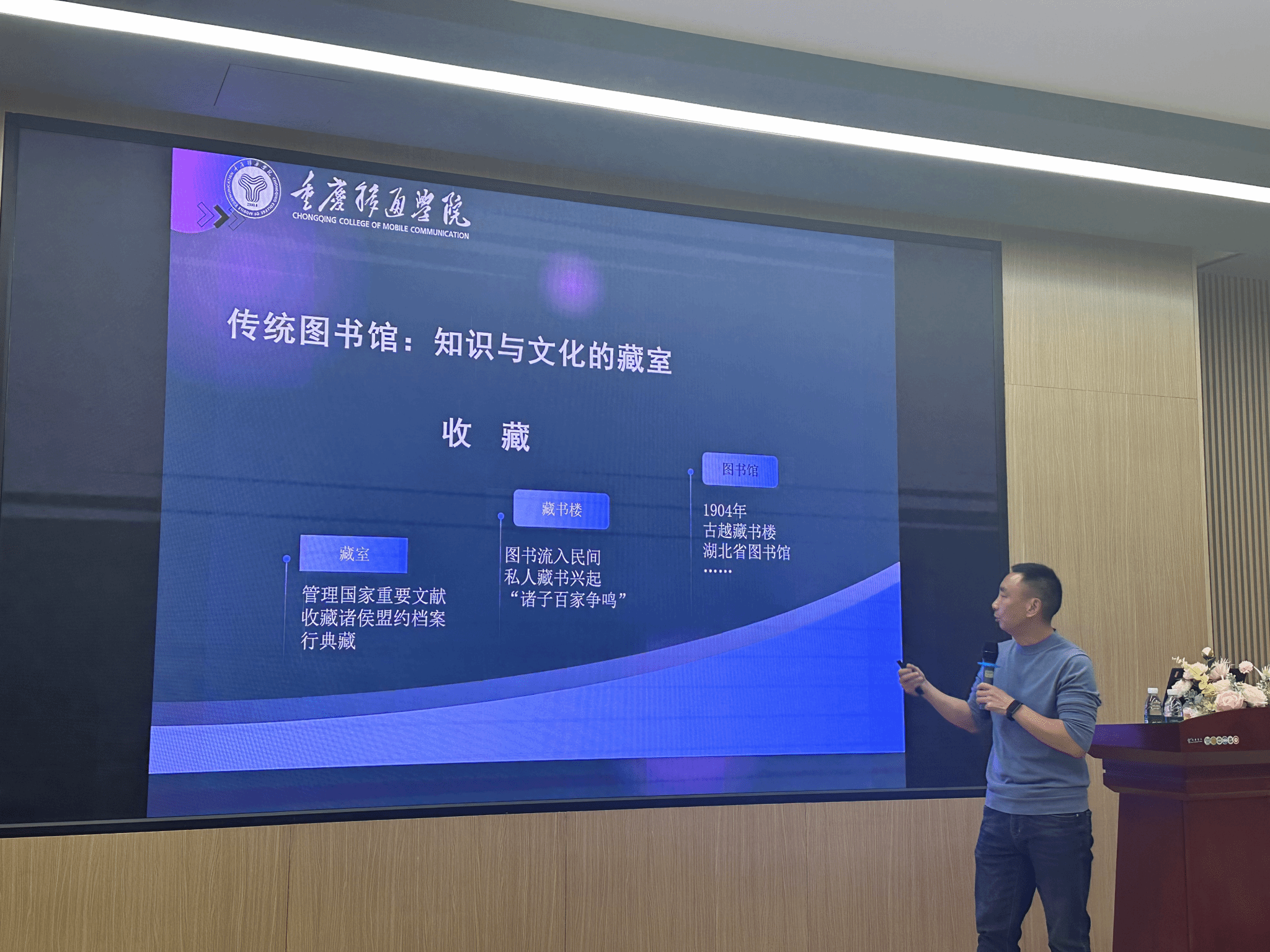 秦馆长在讲座中首先对比了传统图书馆服务和现代新型系统化服务。他解释说,传统图书馆服务通常需要用户亲自进行信息检索,馆员的中介角色相对较弱,并且主要依赖体力劳动来提供检索服务,这使得服务方式显得较为被动。而且,传统模式下用户必须亲自到图书馆才能获得服务。与此形成对比,学校图书馆已经建立了新型系统化的服务。这一服务系统能够根据用户的具体需求,自动进行信息检索、整理和推荐,即使用户不在图书馆内也能享受到高效、便捷的服务。通过这样的现代化服务,图书馆成功打破了时间和空间的限制,为用户提供了更加灵活和主动的服务体验。