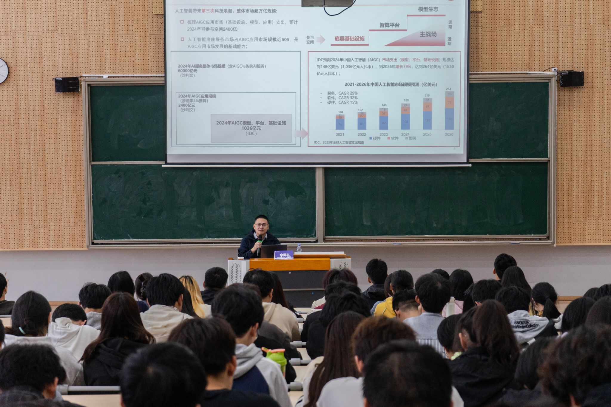 最后,余勇志先生从技术创新角度,展望了智算云基础设施的未来发展。他认为,人工智能、云计算、大数据等技术的不断突破,将为智算云基础设施带来更多可能性。陈主任借此话题提到智算云行业的发展为学生们提供了丰富的就业机会,并邀请余勇志先生分享求职经验。同学们认真聆听,并踊跃就求职中的核心技能等问题与余先生互动,现场气氛活跃。
