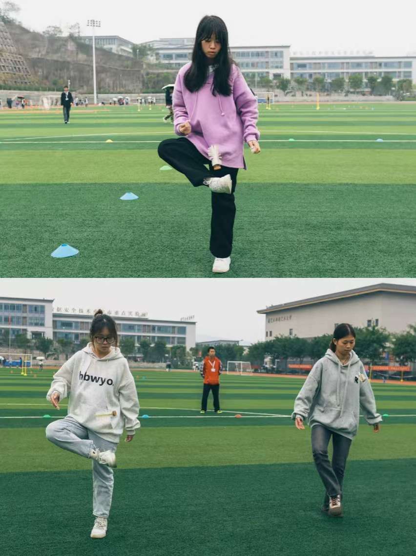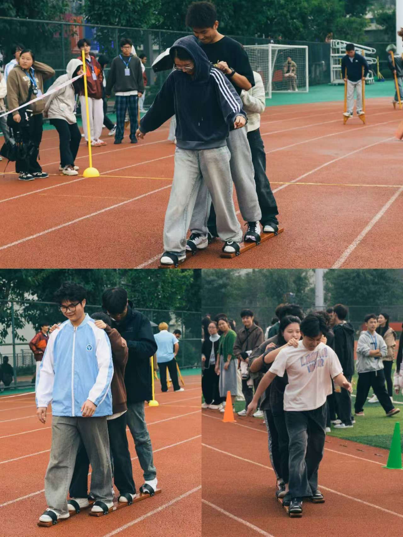 赛场上,三位选手齐心协力地向终点迈进。他们口号响亮,步伐一致,每一步都充满了力量与决心。随着比赛的进行,竞争愈发激烈,各队选手们都全力以赴,展现出了顽强的拼搏精神。老师们和学生们在比赛中都体现了“綦心綦力”的内涵。每个队伍相互配合,彼此信任,为了共同的目标而努力奋斗。无论是在起跑时的迅速反应,还是在途中的稳定前行,亦或是冲刺阶段的奋力一搏,都展现出了团队的凝聚力和战斗力。