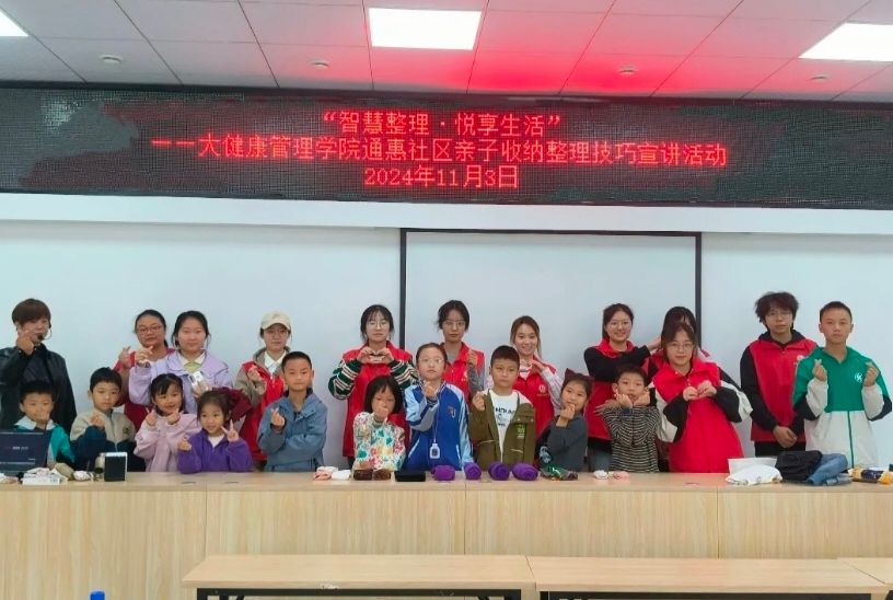 11月3日,大健康管理学院在通惠社区开展“智慧整理·悦享生活”亲子收纳整理技巧宣讲活动,志愿者在指导老师的带领下,对小朋友进行一对一的指导,让他们逐渐掌握收纳整理窍门,此次活动不仅提升了小朋友们的动手能力,还让他们养成良好的生活习惯。