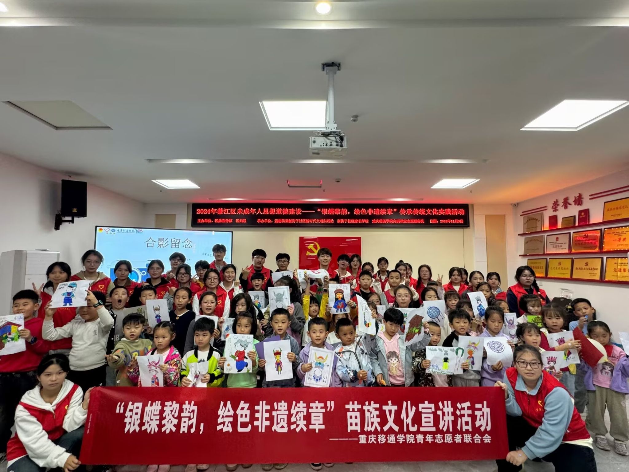 11月3日,青年志愿者联合会项目孵化中心在綦江区通惠街道新街子社区开展“银蝶黎韵,绘色非遗续章”苗族文化宣讲活动,参与人数共计70余人,本次活动旨在给小朋友们宣传苗族文化。青年志愿者联合会项目孵化中心积极筹备,通过合理的分工策划,顺利的开展活动。活动内容丰富,包括了解苗族的知识、语言、绘画艺术等,让小朋友们在欢乐中了解苗族的独特文化。