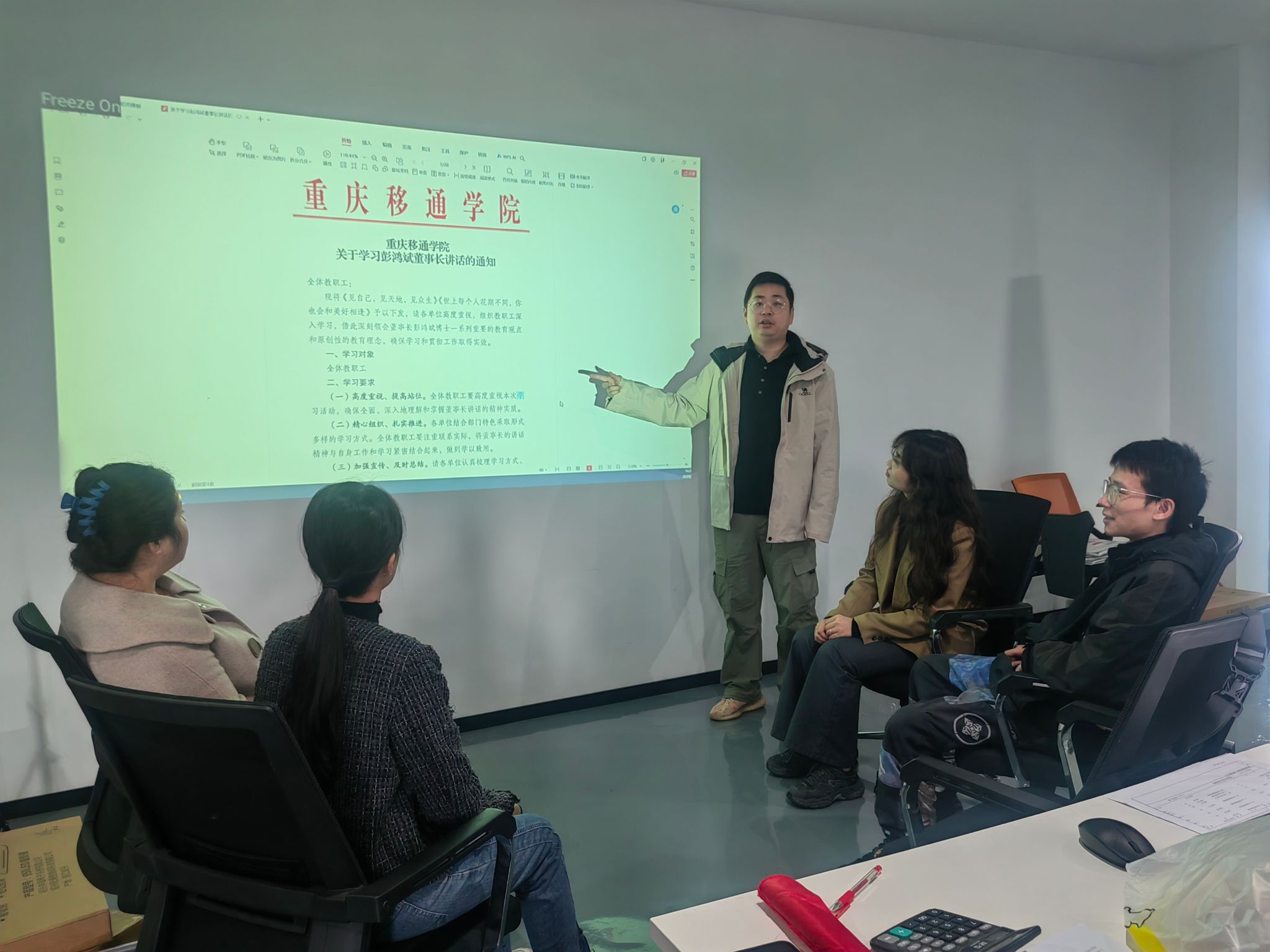 2024年11月20日下午16:00时,数字媒体产业学院全体教师在刘嘉楷主管的安排和带领下,于贤者楼206深入学习并贯彻董事长彭鸿斌的讲话精神,旨在将学习成果转化为推动学院教育事业发展的实际行动。