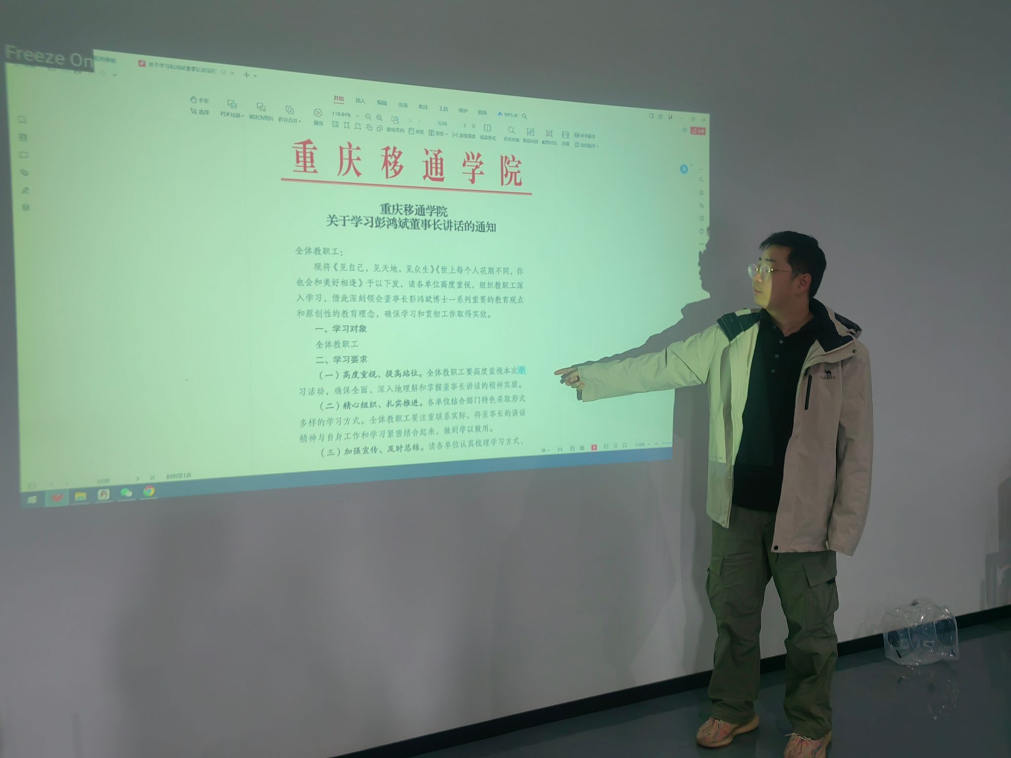 刘嘉楷主管向全体教师认真传达了彭董事长的讲话内容,并指出彭董事长的讲话,对学院未来的发展指明了方向,学院应紧跟时代潮流,加强与企业合作,培养更多适应市场需求的高素质数字媒体人才。