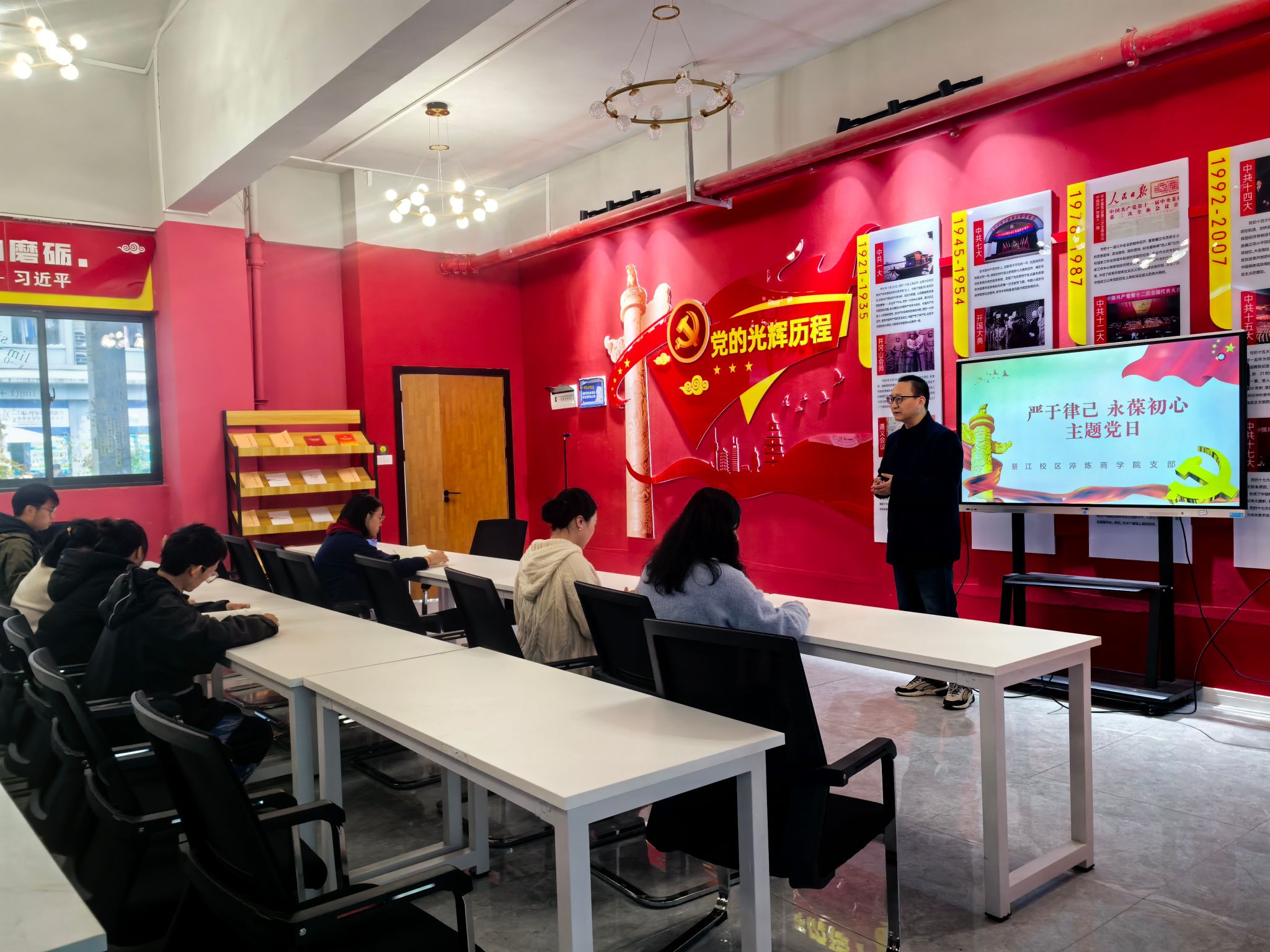 11月20日,淬炼商学院党支部在綦河书院党团活动室成功举办了本月的支部活动,活动主题为“严于律己 永葆初心”。本次活动旨在加强全体党员及预备党员的党性修养,确保每位党员都能始终保持初心,严于律己,为党和人民的事业贡献力量。