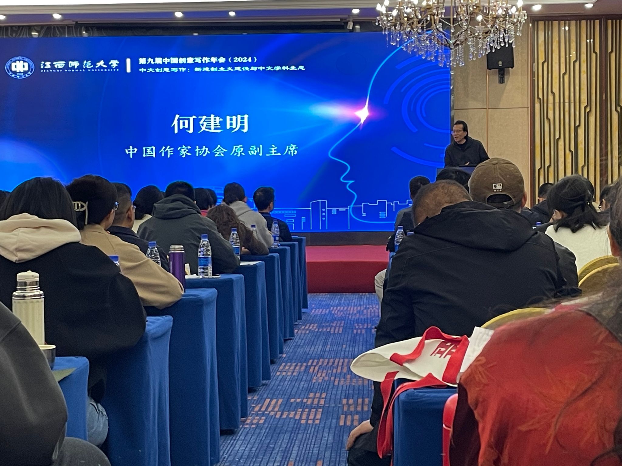 23日上午,江西师范大学副校长姚弋霞、中国作家协会原副主席何建明等先后致辞。主题报告阶段,宁夏文联主席、作协主席郭文斌,同济大学张生教授,北京大学张慧瑜教授,世界华文创意写作协会会长、上海大学葛红兵教授,浙江大学翟业军教授,《探索与争鸣》主编叶祝弟,广州市作协副主席王威廉和江西师范大学詹艾斌教授八位专家学者就“创意写作原理与创意写作建制建设”“作为创意城市参与方法的创意写作”“创意写作与文学性”等多个议题发表演讲,为与会者提供了崭新的创意写作学科视野下的前沿观点。