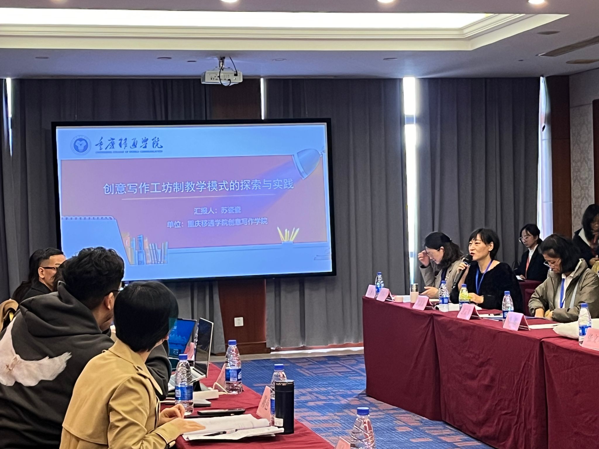 在“创意写作教育教学研究”分论坛中,綦江校区创意写作学院苏瓷瓷副院长以《创意写作工坊制教学模式的探索与实践》为主题发表了报告。苏瓷瓷副院长全面展示了我校以“面向普通人的创意写作”为培养目标的教学理念,以及围绕创意写作作家班工坊所展开的一系列教学探索和实践成果。报告中,苏瓷瓷副院长首先阐述了“创意写作工坊制教学模式”的基本框架与实施路径。她介绍,我校创意写作学院通过五个小班工坊,每班不超过20名学生,强调以学生为主体的教学模式。课程内容涵盖创意阅读、故事写作、诗歌工坊、非虚构写作等多个方向,由知名作家亲自授课,并通过知识讲授、写作实践、作品研讨和潜能激发四个环节系统培养学生的写作能力与创新思维。在教学活动设计上,苏老师着重提到“潜能激发”课程,通过感官训练、记忆唤醒和自我挖掘等方式,激发学生的创作灵感。此外,作品研讨与课堂互动也成为核心环节,学生们在教师指导下进行作品分享和批评讨论,不仅提升了阅读鉴赏能力,还显著增强了表达与协作能力。苏瓷瓷副院长总结道,创意写作工坊制教学模式在课程内容、师资队伍及考核机制上的不断完善,体现了重庆移通学院对创意写作教育的一贯坚持与创新探索。这种模式不仅培养了学生的文学创作能力,还为校地合作、文化传承和社会服务注入了新的活力。此次报告得到了与会专家与同行的高度评价,为创意写作教育的实践创新提供了宝贵经验。