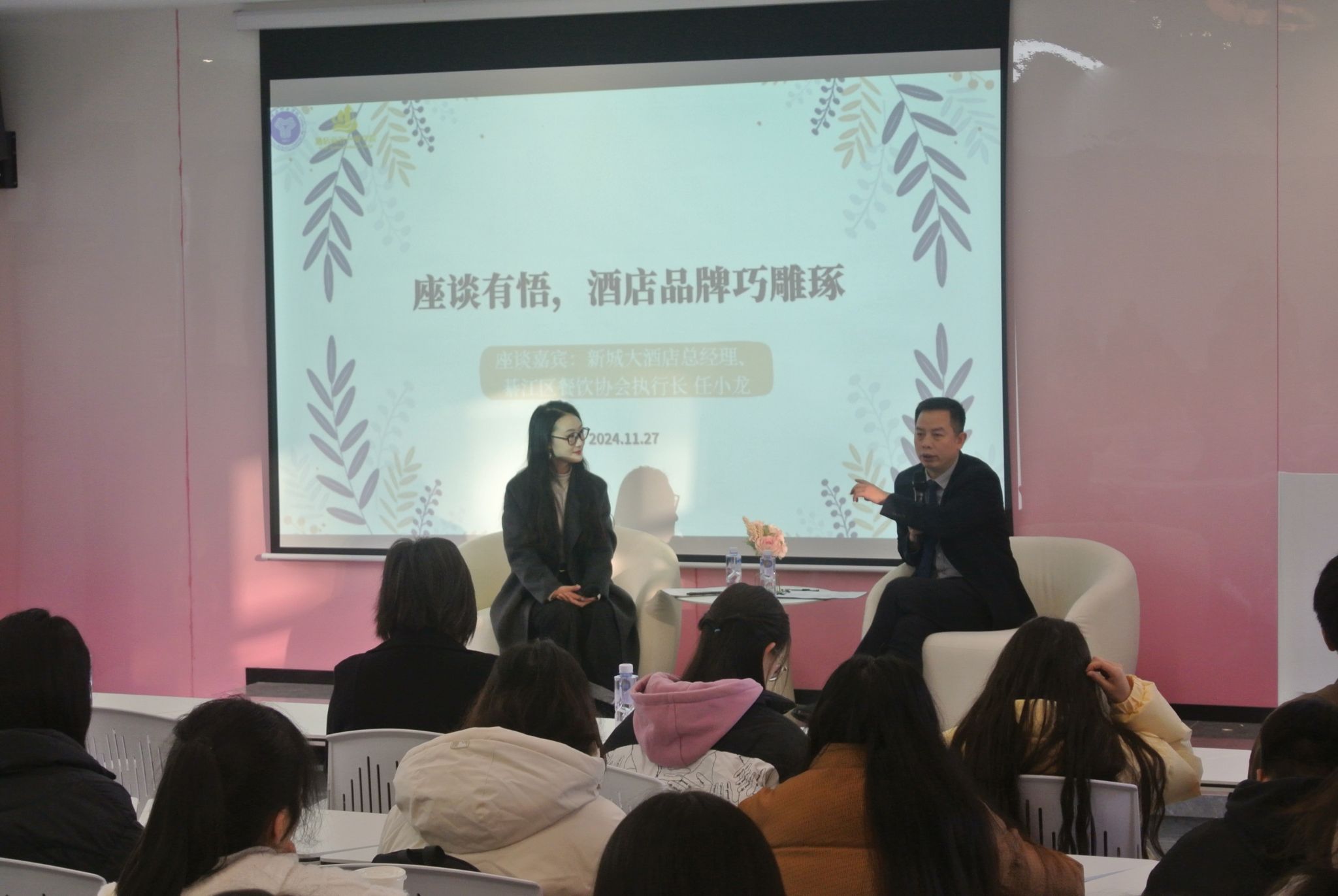 在如今竞争激烈的商业环境下,酒店行业的发展日新月异,而品牌建设和服务品质的保障更是酒店脱颖而出、持续发展的关键所在。11月27日,酒店商务产业学院特邀请綦江新城大酒店总经理、綦江区餐饮协会执行长任小龙先生在丁山书院·天蝎座功能室开展一场以《座谈有悟,酒店品牌巧雕琢》为主题的座谈会。