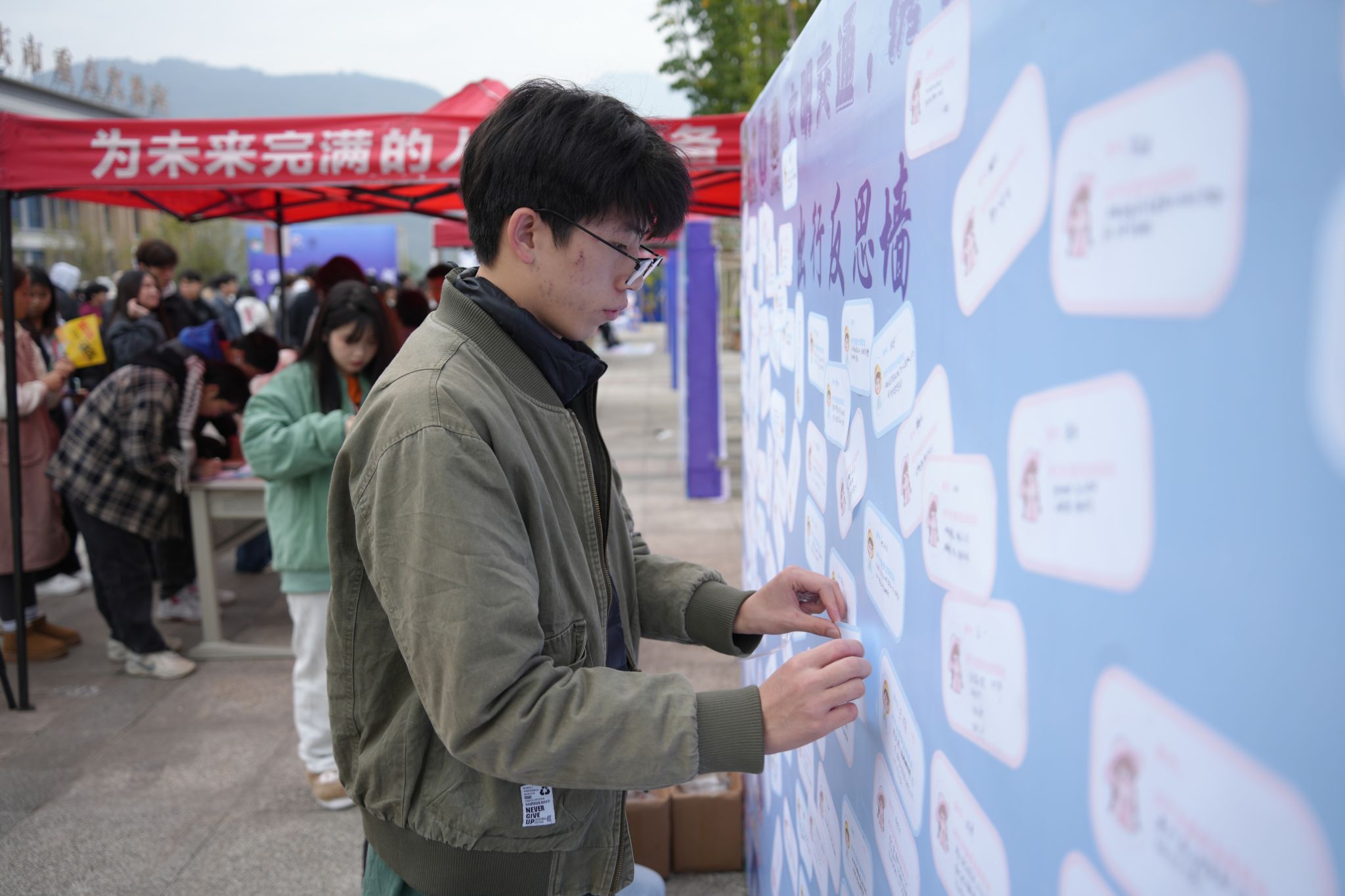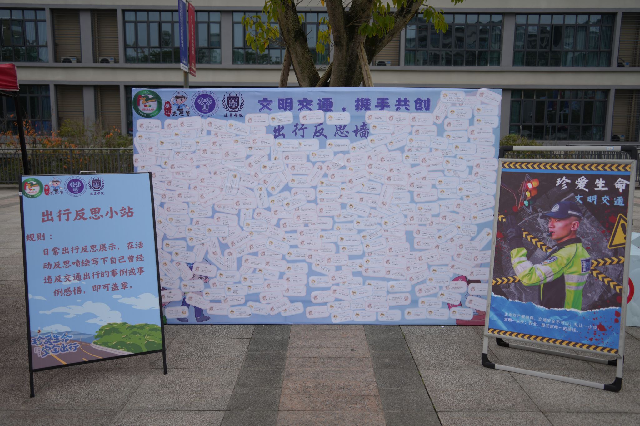 现场设置各式各样体验区,打造沉浸式场景,加强与师生互动感,其中,交通安全体验区无疑是本次活动的“重头戏”,十个各具特色的体验活动精彩纷呈。在“綦路安行互动之旅”,同学们通过关注綦江区公安局交巡警支队官方抖音号、QQ号,在官方平台上汲取交通安全法规、事故防范技巧等知识干货,指尖滑动间,安全意识悄然扎根;“交通标识大挑战”与“交通手势闪电”“出行常识大闯关” 区域内,问答声此起彼伏,同学们踊跃抢答,在竞争氛围中强化对交通标识含义、手势指令、出行要点的记忆,夯实交通安全理论基础;“出行反思小站”,同学们静心沉思自身出行陋习,郑重写下感悟,将外在约束转化为内在自律;“交通安全飞行棋大冒险”通过模拟逼真交通场景,骰子滚动间,游戏进程与交通安全知识学习同步推进,让同学们在欢声笑语中领悟规则重要性;“海报合影传安行”则借助社交传播力量,同学们手持标语、与海报亲密合影,一键分享,让活动影响力呈几何级数扩散。